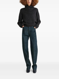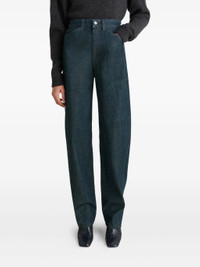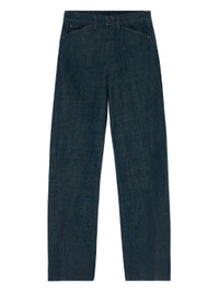 - indigo blue - five pockets - metal rivets - button closure - hidden zip - twisted front panels Materials & Product Care Cotton 100%