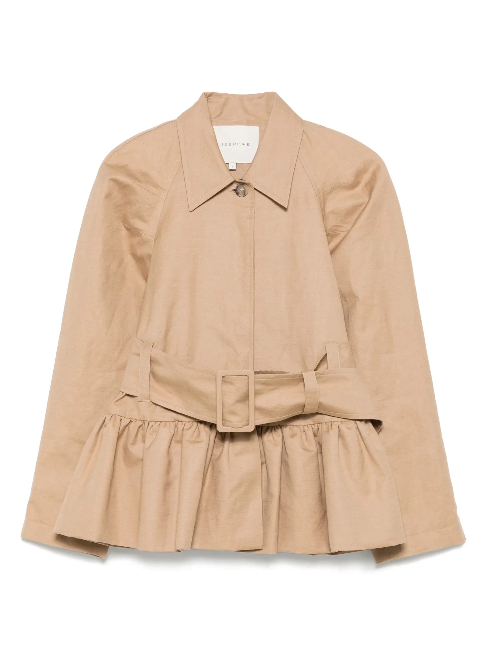 - camel beige - concealed front button fastening - belted waist - long raglan sleeves Materials & Product Care Lining: viscose 100% Outer: Acetate 39%, Cotton 61% Size & Fit - Designed to be unstructured, offering a loose fit throughout - Made from a midweight non-stretch fabric - The belt offers adjustability for fitted preferences - The model is 1.79 m wearing size S.