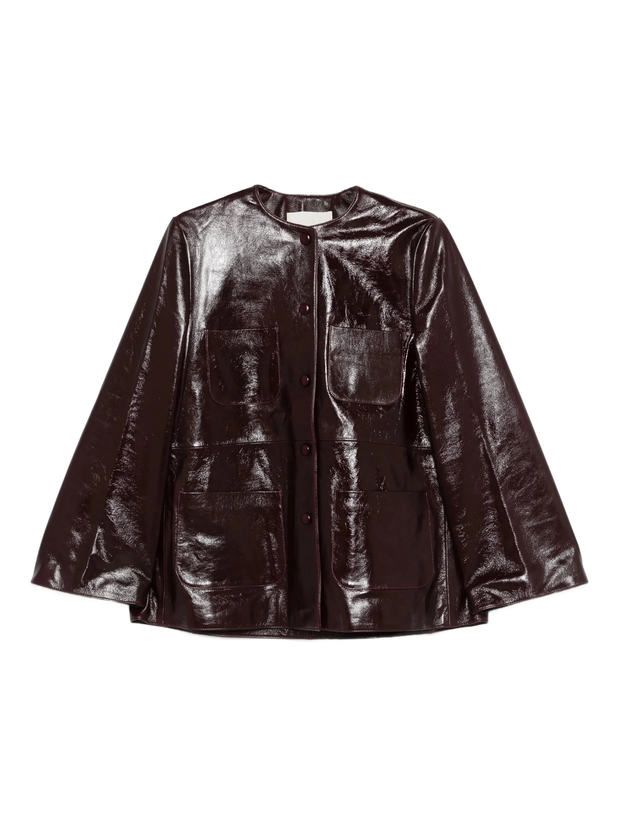 - burgundy - front patch pockets - round neck - front button fastening - long sleeves Materials & Product Care Lining: viscose 100% Outer: Calf Leather 100% Size & Fit - The model is 1.80 m wearing size S.