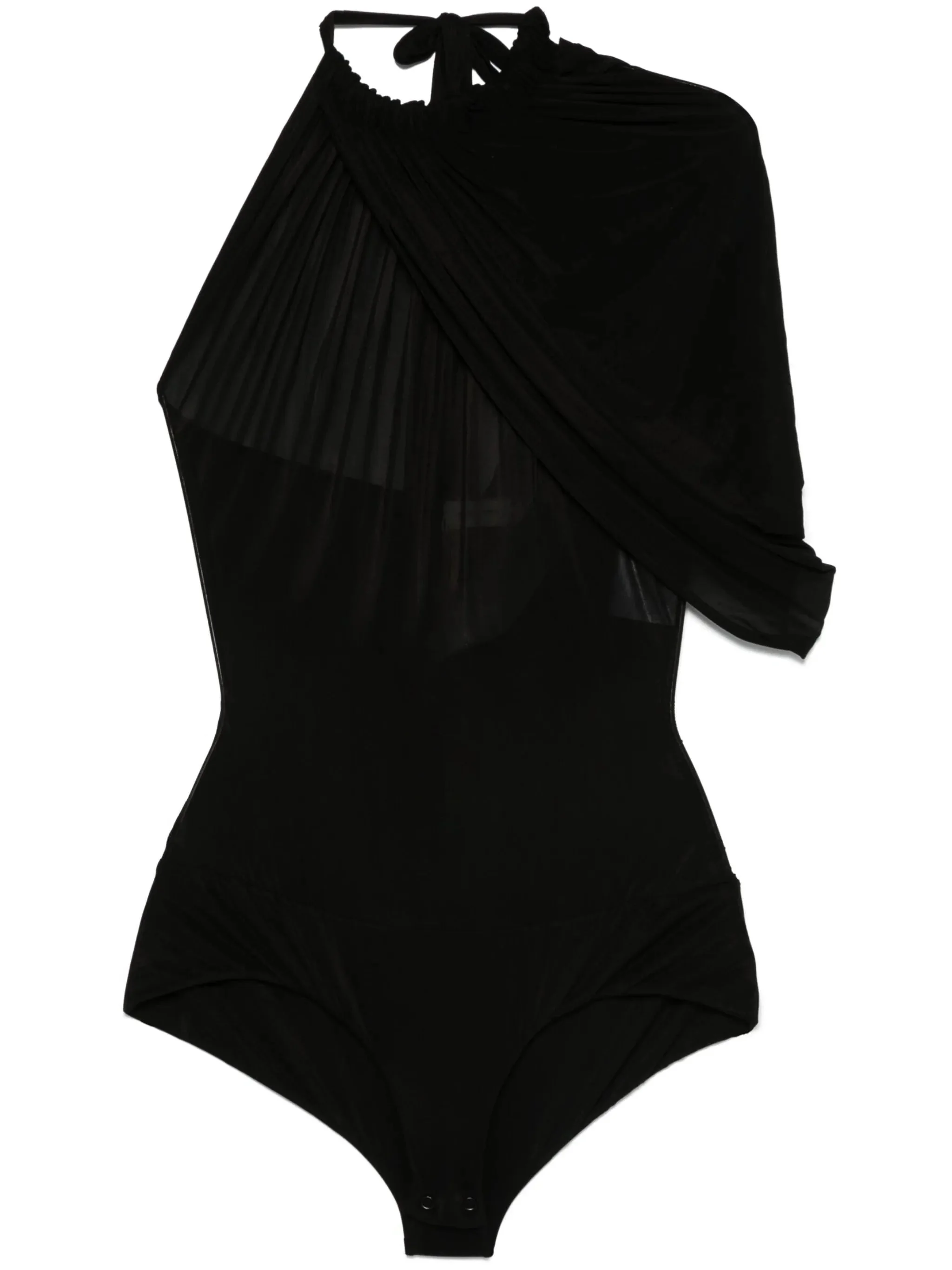 - black - halterneck tie fastening - press-stud fastening - draped panel detail - Just a reminder that this piece must be tried on over your own garments. Materials & Product Care Cupro 92%, Spandex/Elastane 8% Size & Fit - Designed for a close fit throughout - Made from a lightweight stretch fabric, this piece offers elasticity and flexibility when worn - The tie fastening gives an adaptable and personalised fit - The model is 1.80 m wearing size 36.