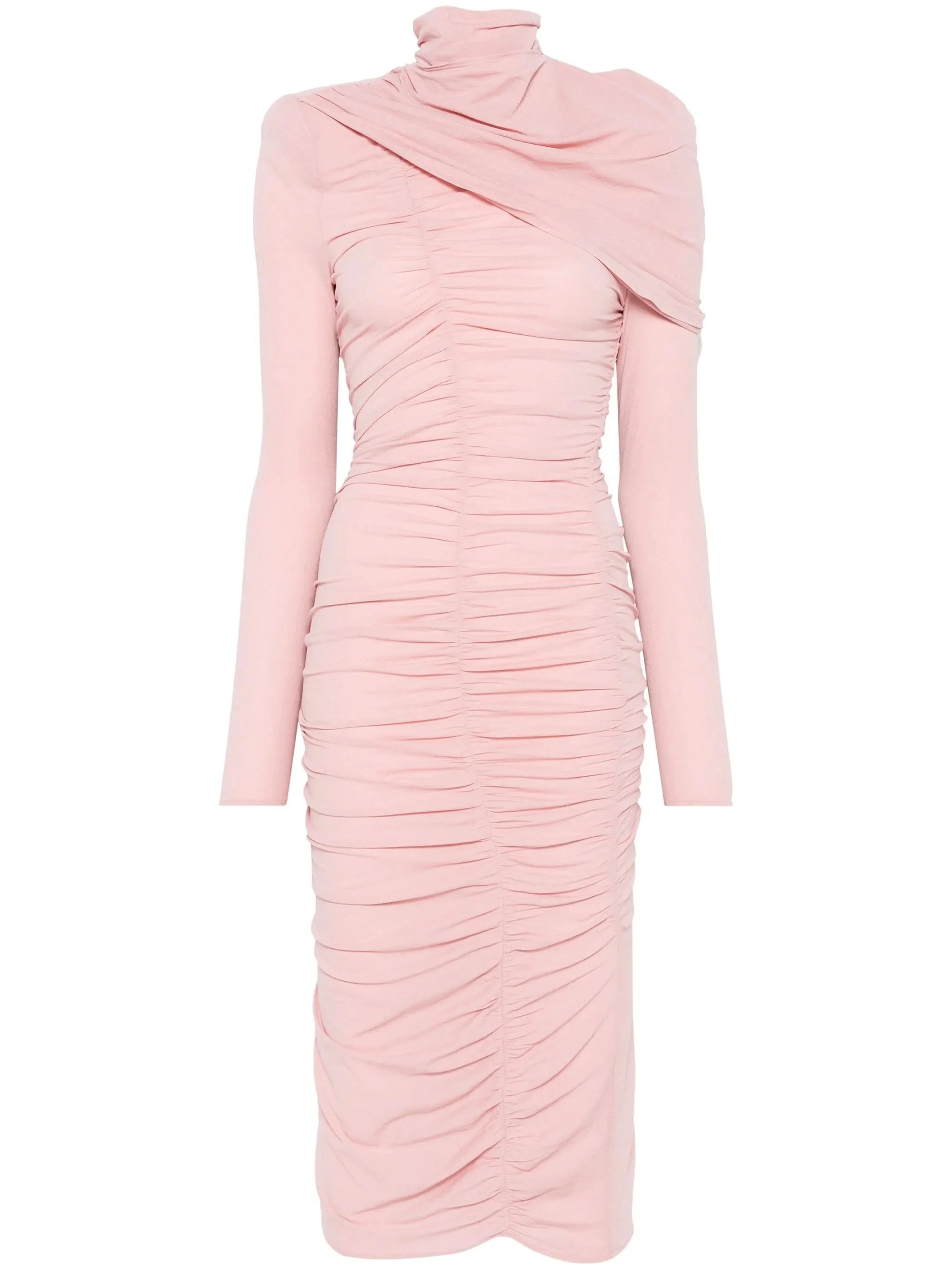 draped high-neck midi dress