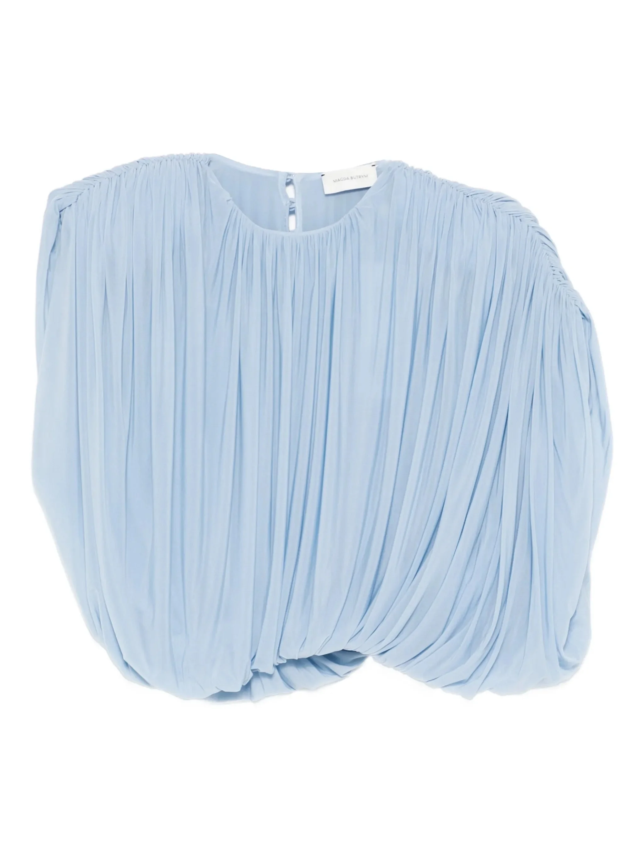 - light blue - pleated design - round neck - gathered shoulders - rear zip fastening Materials & Product Care Cupro 92%, Spandex/Elastane 8% Size & Fit - The model is 1.78 m wearing size 36.