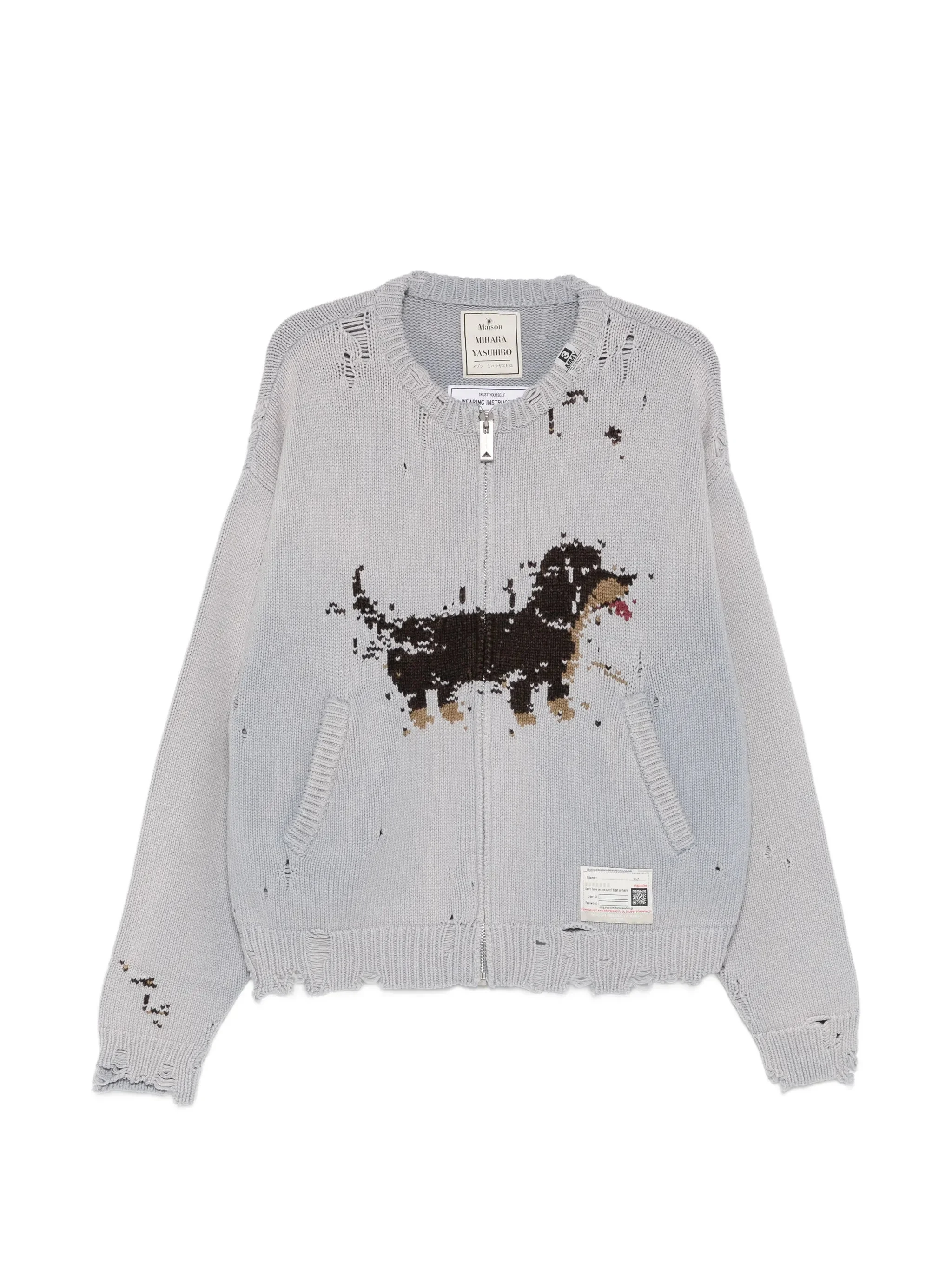 - light blue - jacquard dog motif - zip fastening - front pockets - distressed detailing - ribbed hem Materials & Product Care Acrylic 40%, Cotton 60% Size & Fit - The model is 1.87 m wearing size 48.
