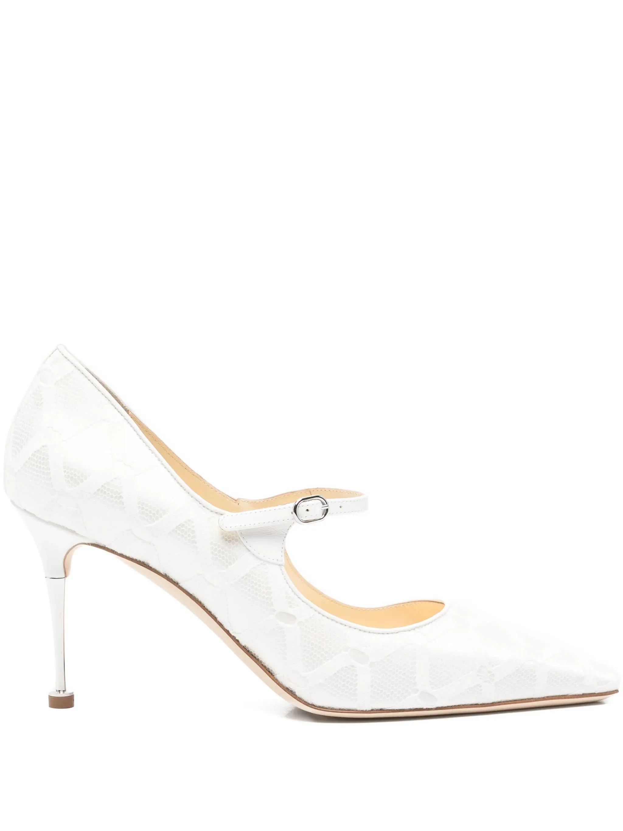 - white - geometric pattern - 90mm heel - pointed toe - buckle-fastening strap - This piece comes complete with a protective dust bag. Materials & Product Care Lining: Calf Leather 100% Outer: Fabric 45%, Lambskin 10%, Silk 45% Sole: Calf Leather 100%