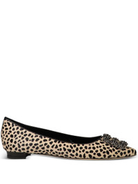 Animal Print Calf Hair Jewel Buckle Flat Pumps