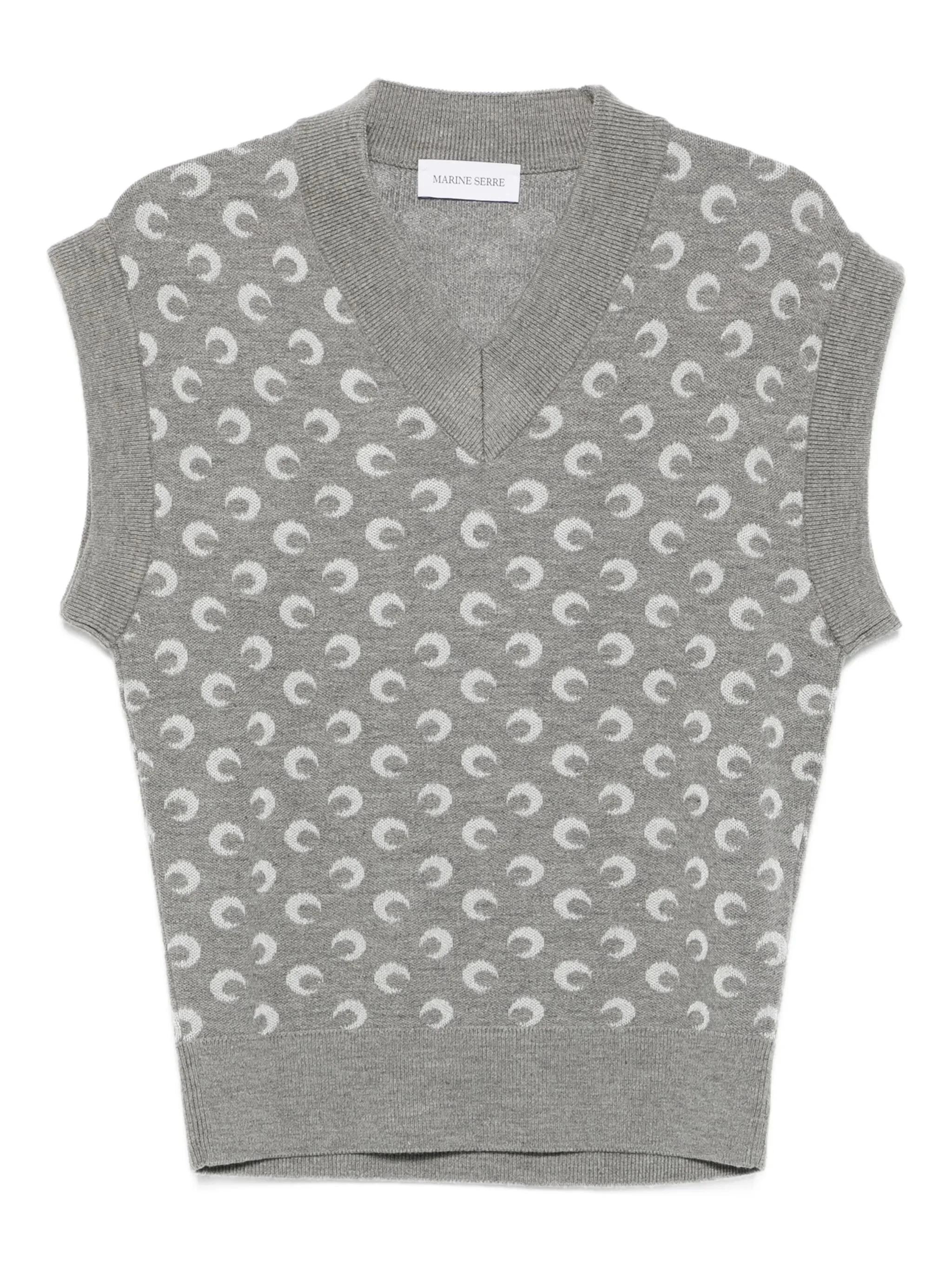 - misty grey - V-neck - sleeveless - crescent moon pattern - textured panel - jacquard weave Materials & Product Care Virgin Wool 50%, viscose 50% Size & Fit - The model is 1.80 m wearing size S.