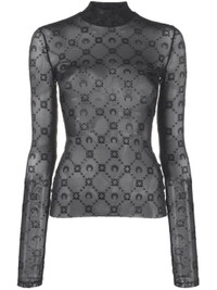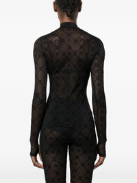 - black - recycled polyamide blend - mesh design - sheer - all-over flocked moonogram - high neck - long sleeves - straight hem Materials & Product Care Elastane 14%, Recycled Polyamide 86% Size & Fit - Designed for a close fit throughout - Made from a lightweight stretch fabric, this piece offers elasticity and flexibility when worn