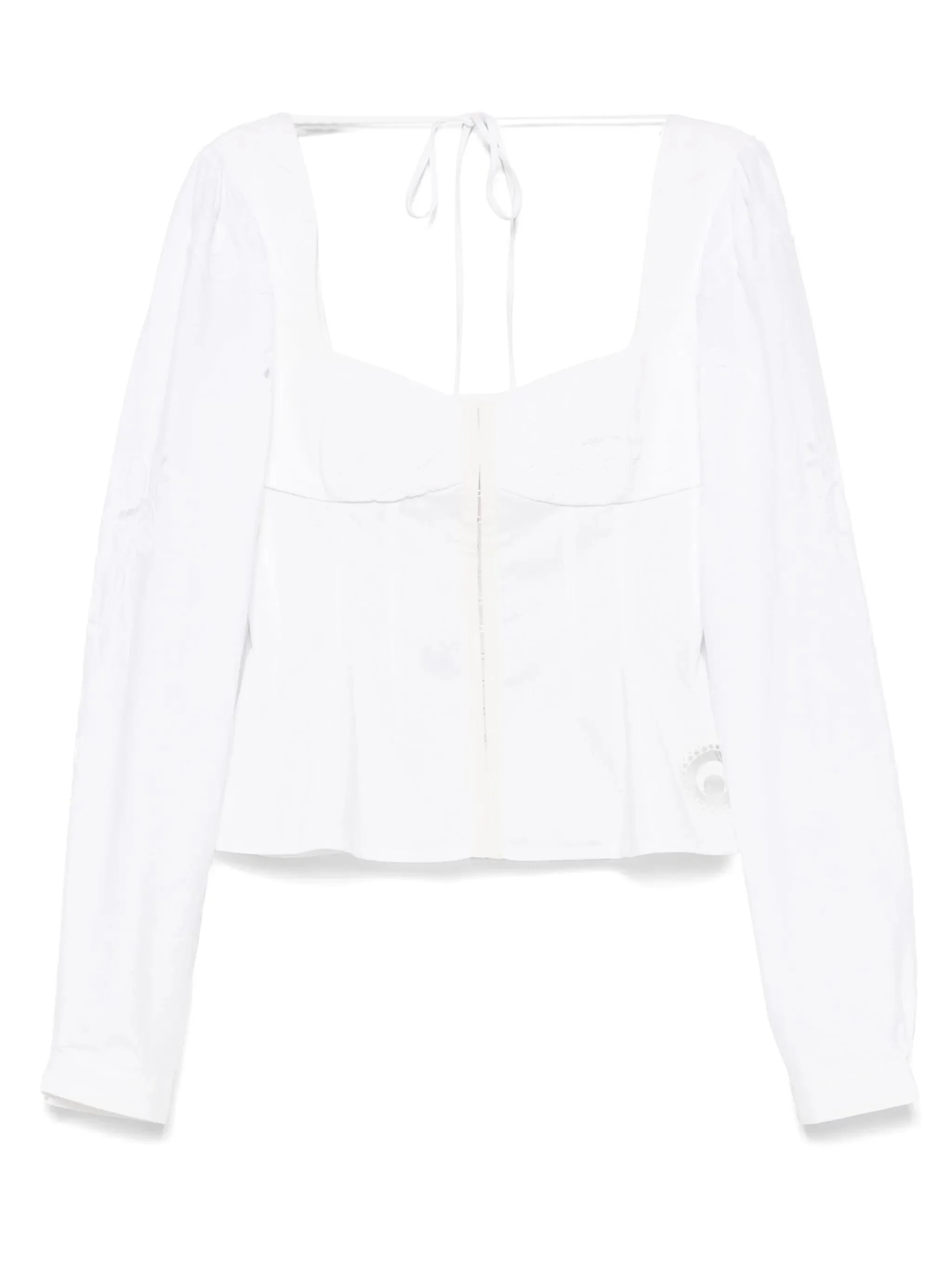 - white - front hook and eye fastening - rear tie fastening - buttoned-cuff sleeves - sweetheart neck Materials & Product Care Cotton 100% Size & Fit - Designed for a slim fit that sits just away from the body offering a close yet comfortable fit - Made from a midweight non-stretch fabric - The tie fastening gives an adaptable and personalised fit - The model is 1.78 m wearing size 36.