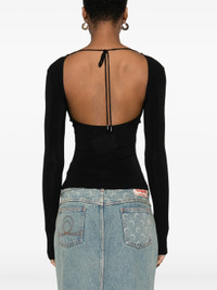 - black - front tie fastening - sweetheart neck - long sleeves - open back - This product is crafted from upcycled materials so the one you receive may differ slightly from the item pictured. Materials & Product Care Silk 100% Size & Fit - Designed for a close fit throughout - Made from a midweight stretch fabric, this piece offers elasticity and flexibility when worn - The sleeves are constructed with additional length and built-in thumb loops that allow for movement and a secure fit - The model is 1.80 m wearing size S.