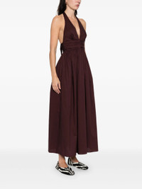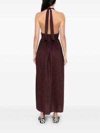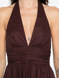 - purple - organic cotton - halterneck - bow detail - gathered waist - midi length - plunge neck Materials & Product Care Organic Cotton 100% Size & Fit - The model is 1.78 m wearing size 1.