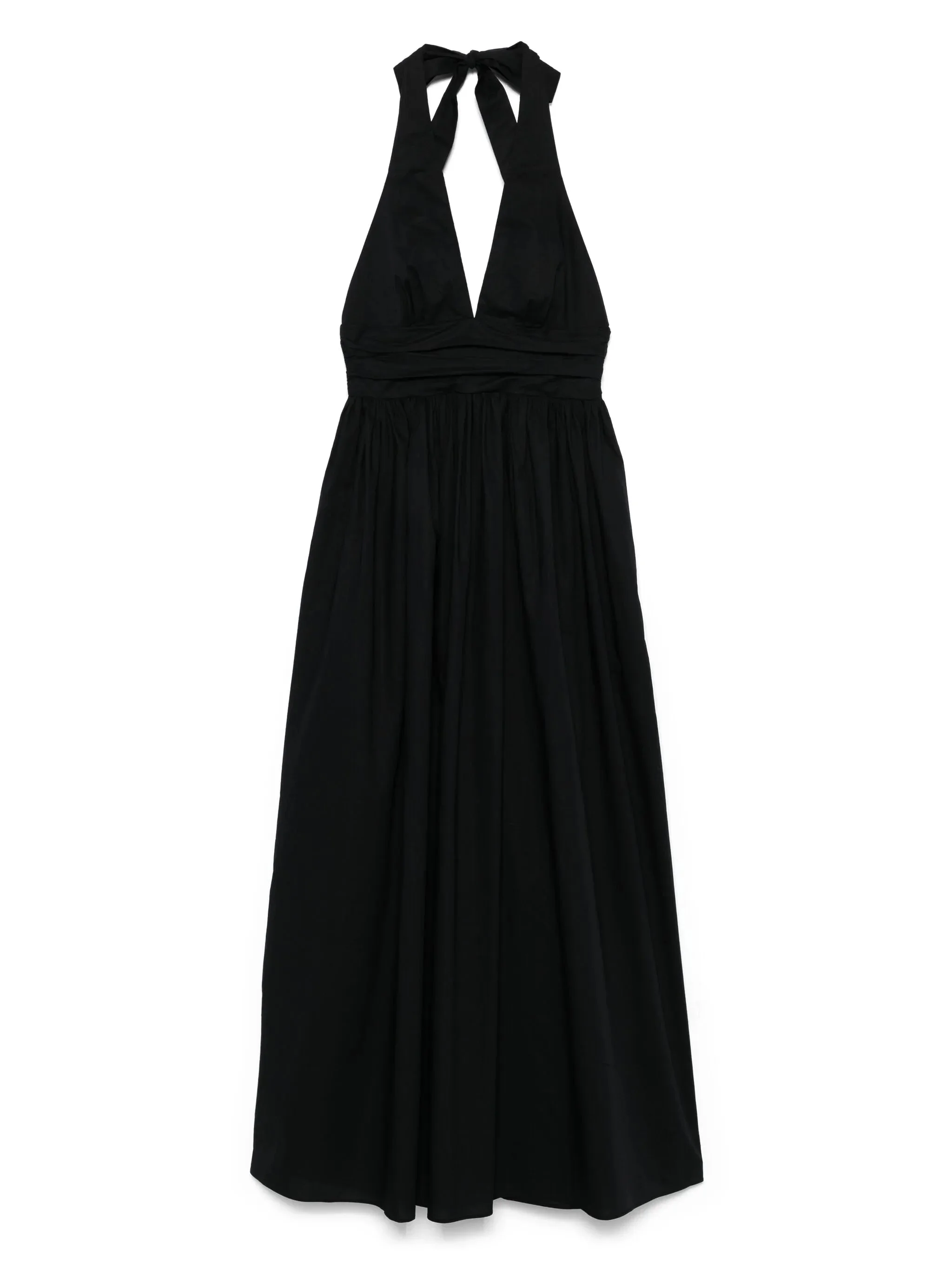 - black - concealed rear hook and zip fastening - halterneck tie fastening - two side inset pockets - gathered detailing Materials & Product Care Organic Cotton 100% Size & Fit - Designed for a close fit at the chest and waist with a loose fit at the hip - Made from a midweight non-stretch fabric - The model is 1.78 m wearing size 1.
