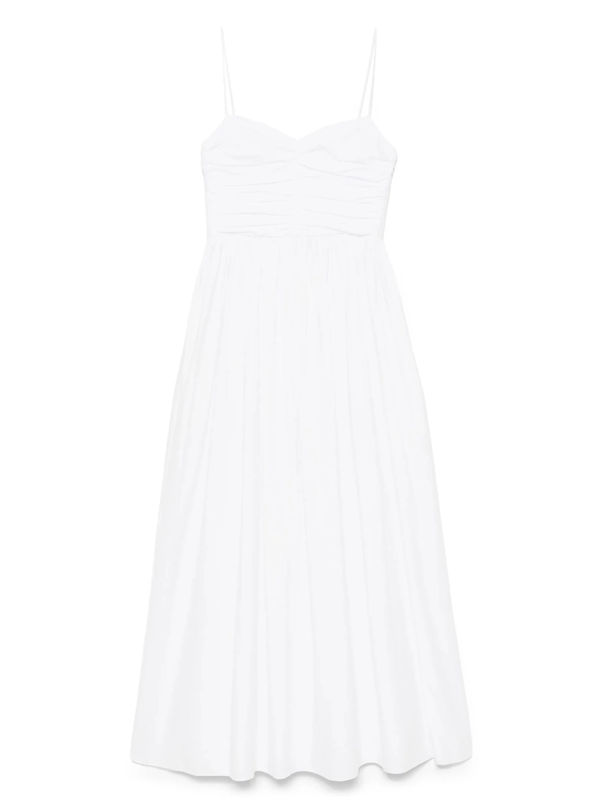 - white - concealed side hook and zip fastening - two side inset pockets - sweetheart neck - gathered detailing Materials & Product Care Organic Cotton 100% Size & Fit - Designed for a close fit at the chest and waist with a loose fit at the hip - Made from a midweight non-stretch fabric - The model is 1.78 m wearing size 1.