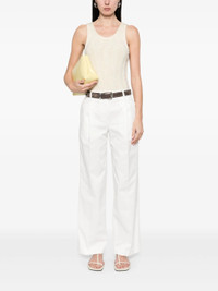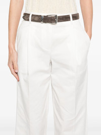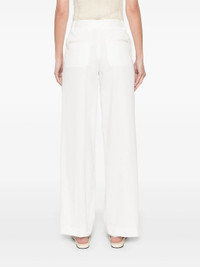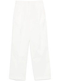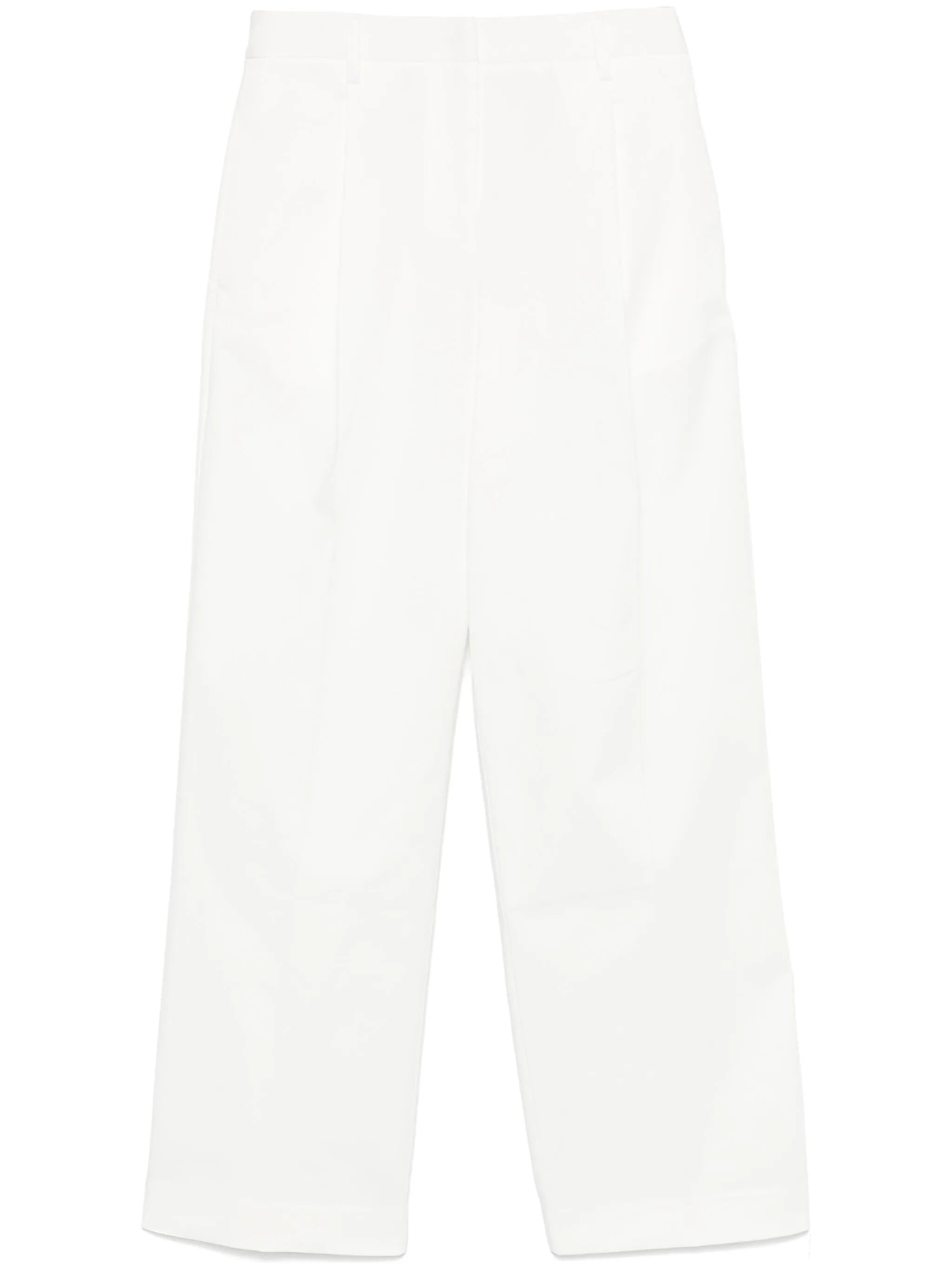 - white - concealed front button, hook and zip fastening - two side inset pockets - two rear jetted pockets - pleat detailing Materials & Product Care Elastane 3%, Organic Cotton 97% Size & Fit - Designed with a wide-leg cut, these trousers allow for a close fit at the waist and offer a loose and roomy fit over the leg - Made from a midweight stretch fabric, this piece offers elasticity and flexibility when worn - The model is 1.78 m wearing size 1.