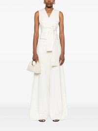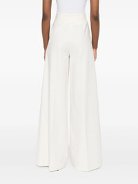 - white - hook and zip fly fastening - two diagonal pockets to the sides - pressed crease - dart detailing Materials & Product Care Cotton 95%, Elastane 5% Size & Fit - Designed with a wide-leg cut, these trousers allow for a close fit at the waist and offer a loose and roomy fit over the leg - Made from a midweight stretch fabric, this piece offers elasticity and flexibility when worn - The model is 1.80 m wearing size 40.