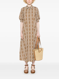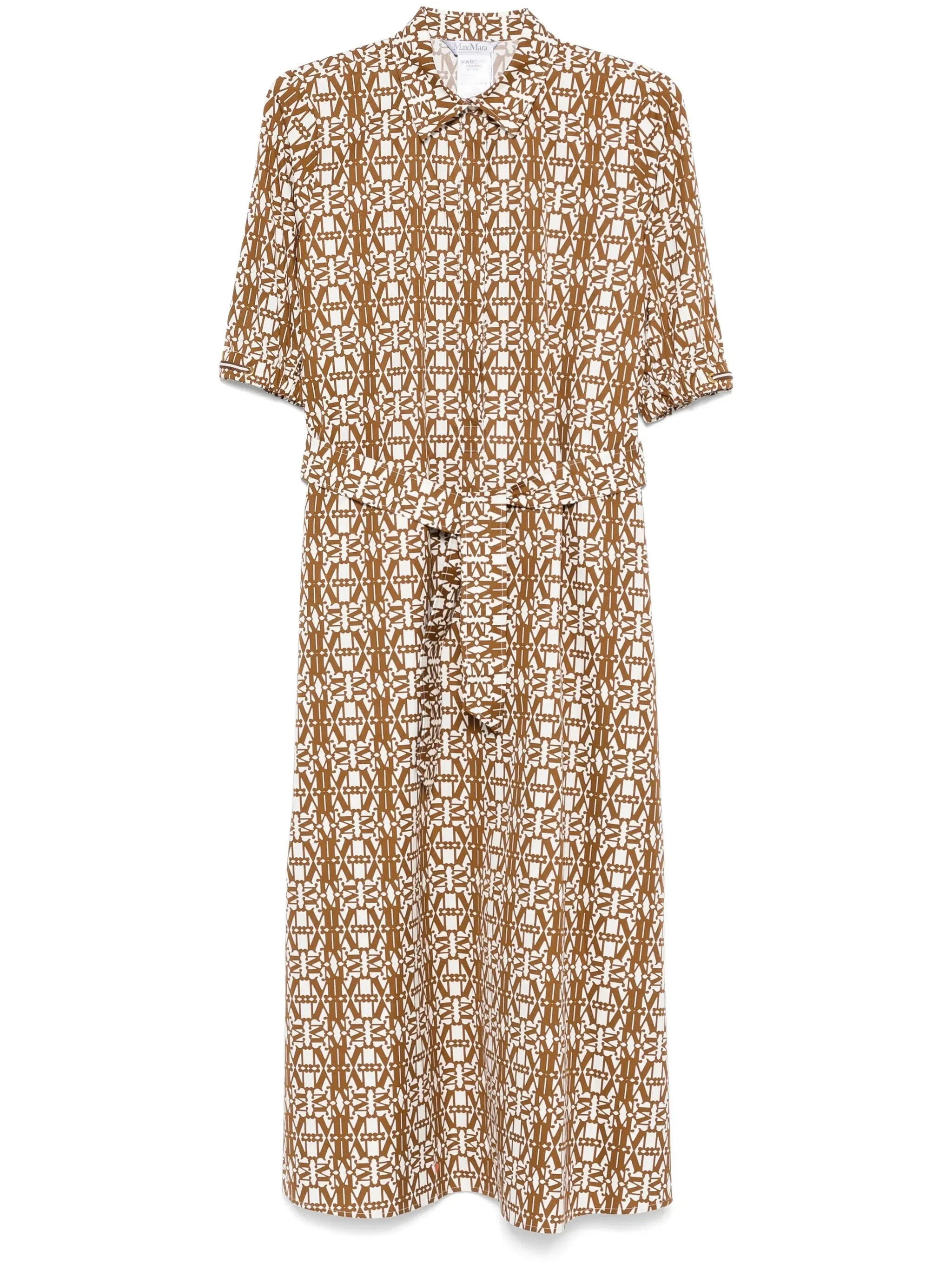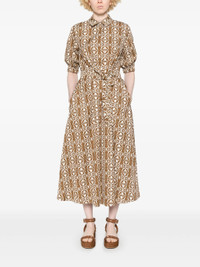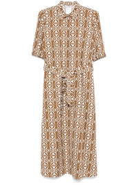 - tobacco brown - concealed front button fastening - tied waist - short sleeves - two side slit pockets Materials & Product Care Cotton 100% Size & Fit - Designed to be unstructured, offering a loose fit throughout - Made from a midweight non-stretch fabric - The adjustable tie waist gives a more adaptable and personalised fit - The model is 1.75 m wearing size 40.