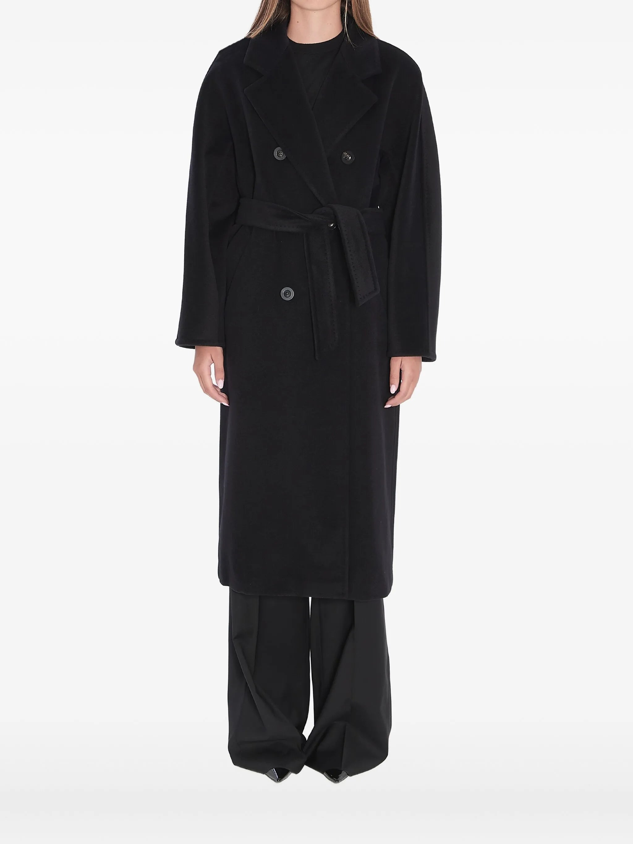 - black - double-breasted button fastening - detachable adjustable waist strap Materials & Product Care Metallised Fibres 1%, viscose 99% Outer: Cashmere 10%, Wool 90%