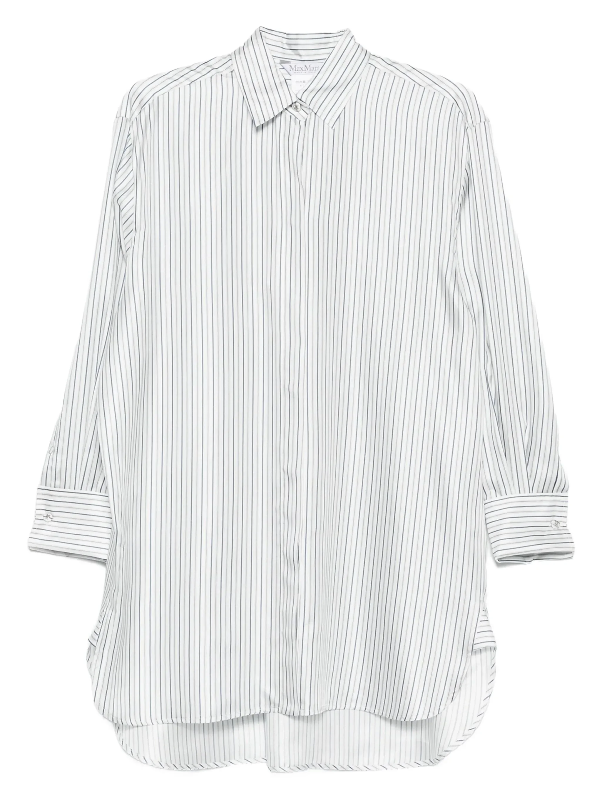 - white - front button fastening - stripe detailing Materials & Product Care Silk 100% Size & Fit - The model is 1.77 m wearing size 40.