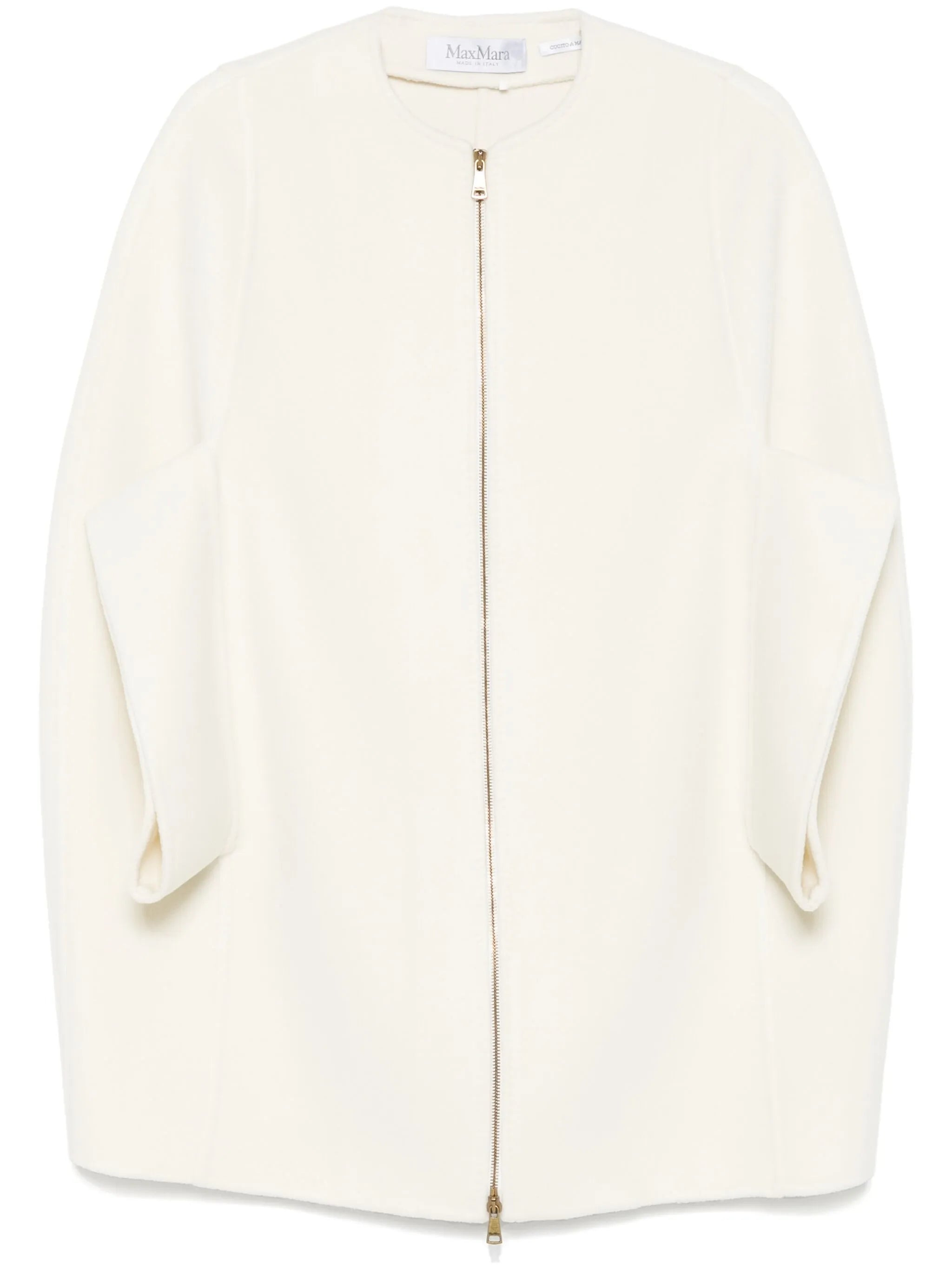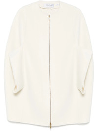 - white - front two-way zip fastening - round neck - short sleeves Materials & Product Care Cashmere 100% Size & Fit - Designed to be fitted across the shoulders, becoming looser as it falls - Made from a midweight non-stretch fabric - The model is 1.78 m wearing size 40.