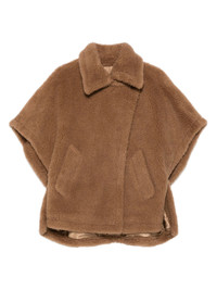 - camel brown - concealed front fastening - short sleeves - two side welt pockets Materials & Product Care Lining: viscose 100% Outer: Camel Fur 88%, Silk 12% Size & Fit - The model is 1.79 m wearing size OS.