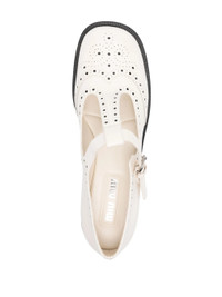 - white - buckle fastening - stacked heel - perforated detailing - rubber sole Materials & Product Care Leather 100%