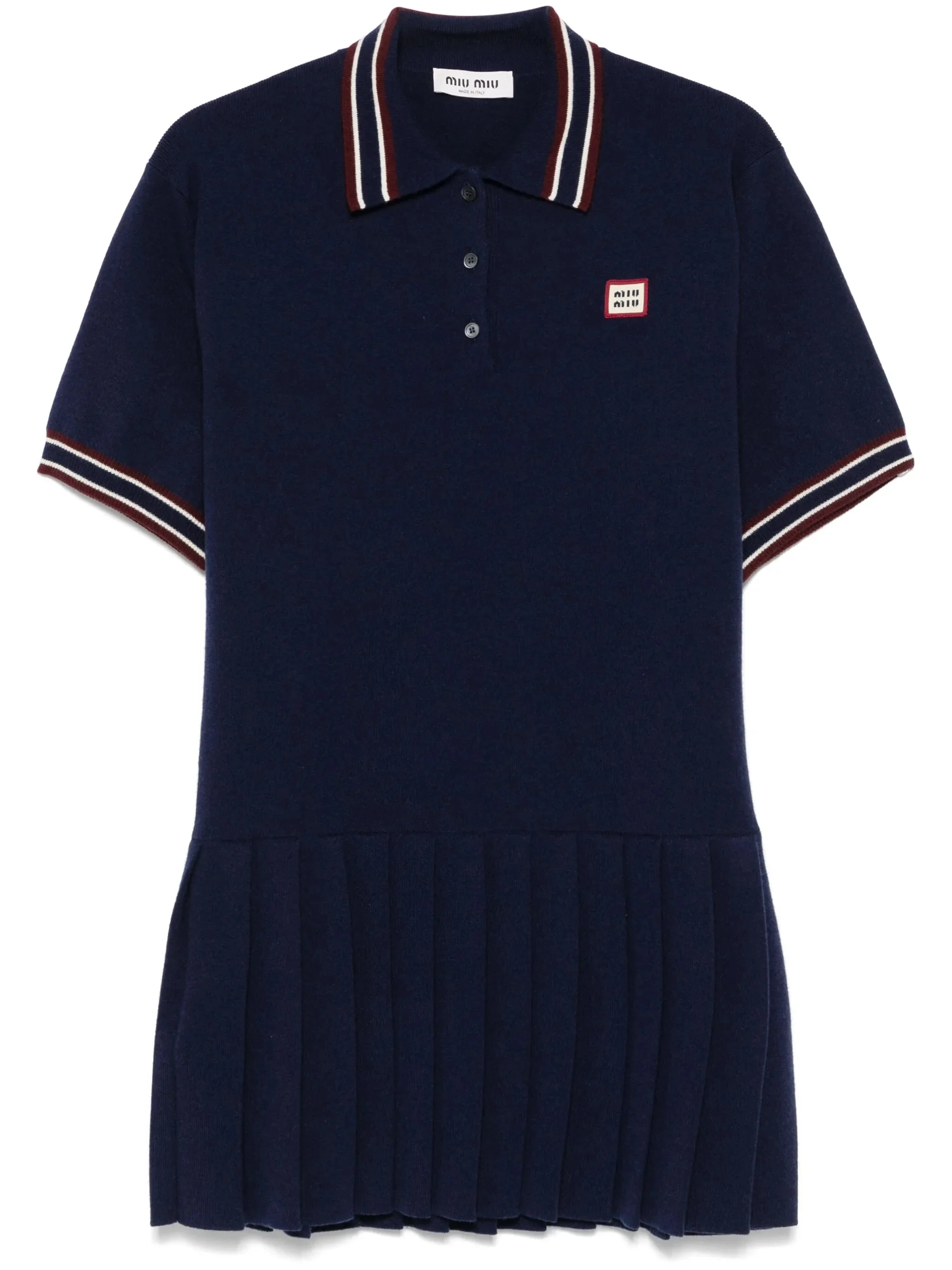 - navy blue - short front button fastening - pleated skirt - ribbed cuffs - polo collar Materials & Product Care Cashmere 30%, Virgin Wool 70% Size & Fit - Designed for a slim fit that sits just away from the body offering a close yet comfortable fit - Made with a midweight knit, this piece offers some stretch - The model is 1.75 m wearing size 40.