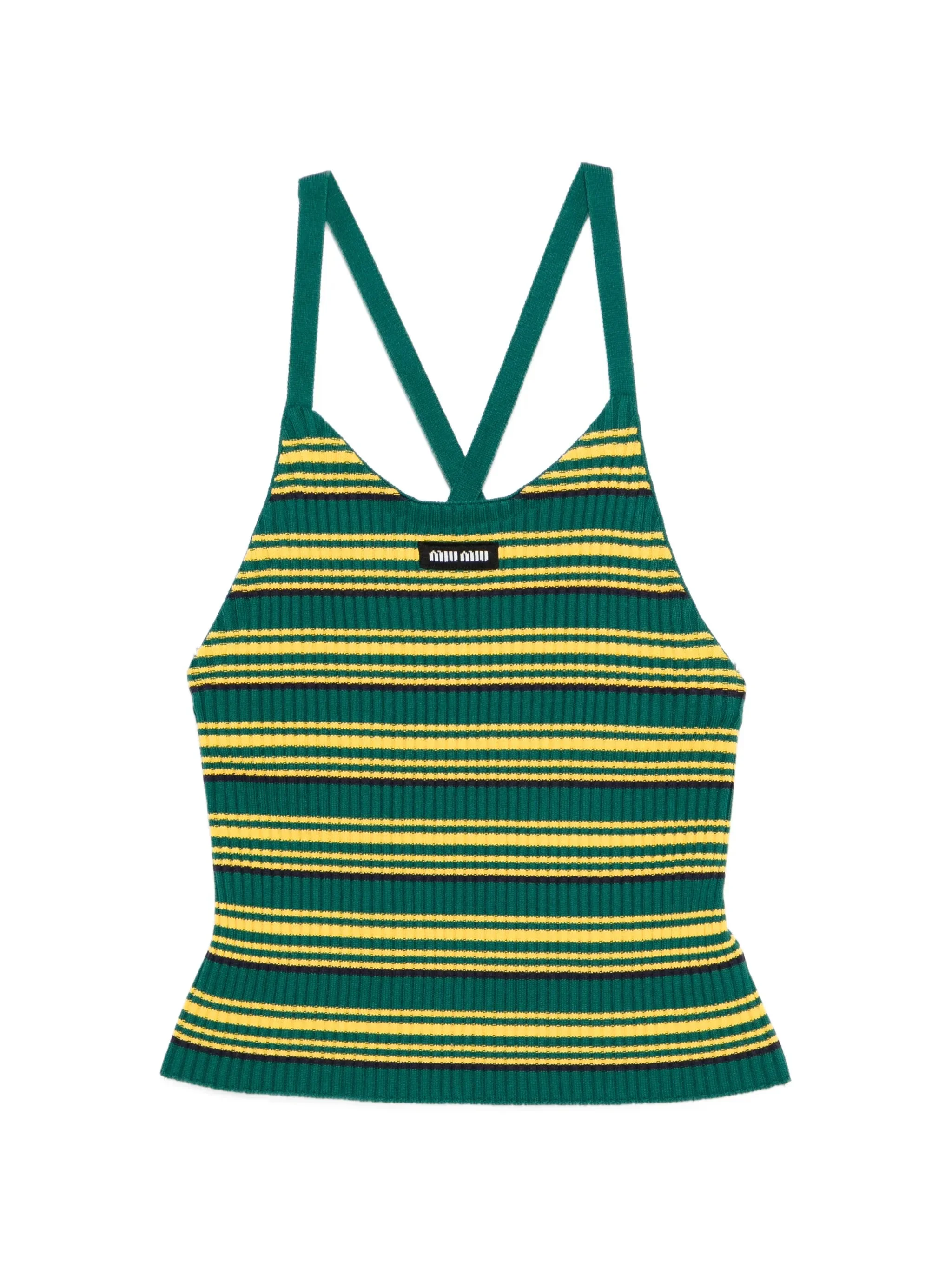 - bottle green and yellow - striped - open back - logo patch - halterneck - cropped Materials & Product Care Cotton 92%, Elastane 1%, Polyamide 7% Size & Fit - The model is 1.78 m wearing size 40.