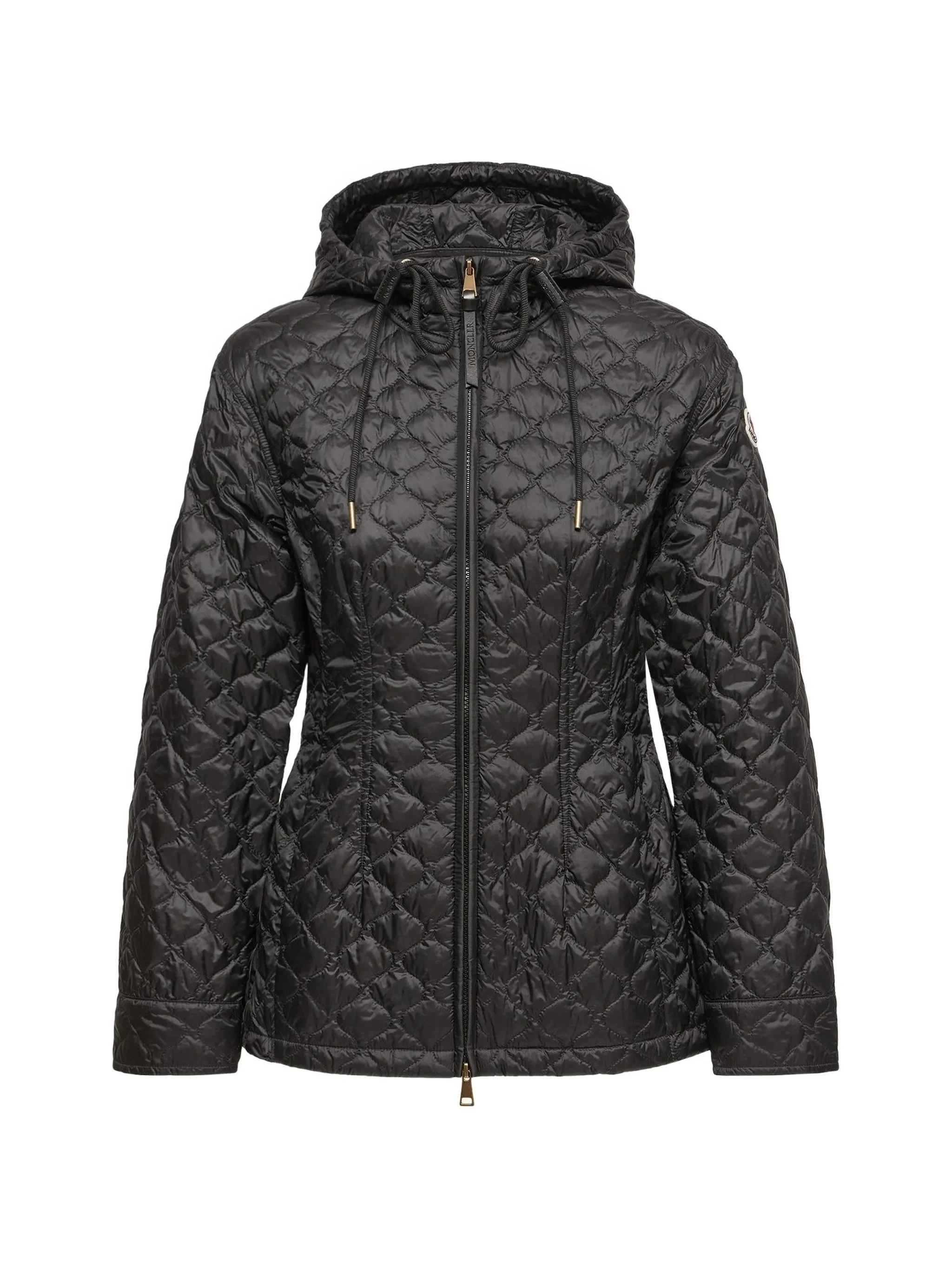 - black - quilted - hood - zip fastening - long sleeves - logo patch Materials & Product Care Lining: Down 90%, Feather 10%, Polyamide 100% Outer: Polyamide 100%