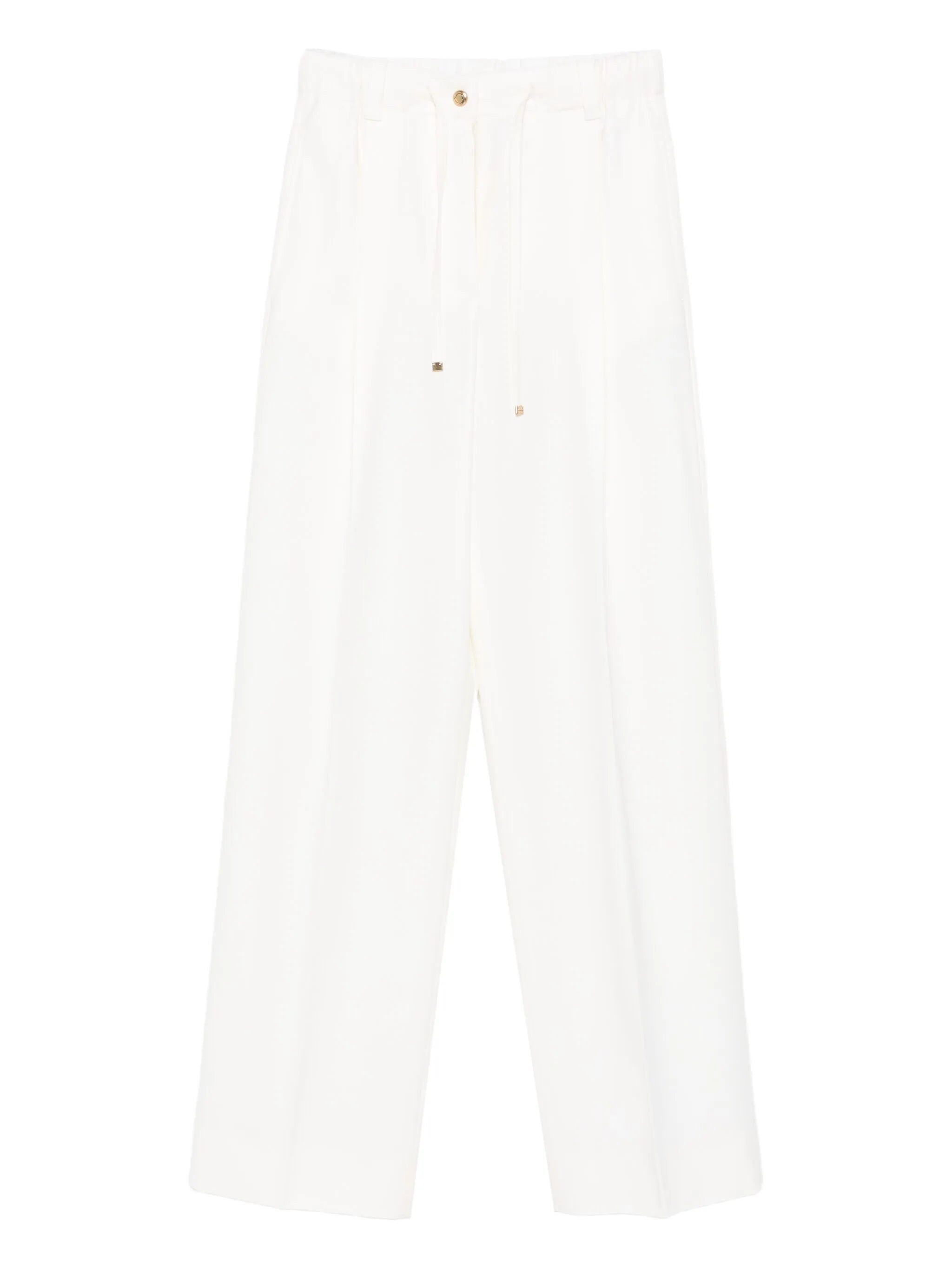 - white - drawstring fastening - pleated front - straight leg - gold-tone hardware - mid-rise waist Materials & Product Care Virgin Wool 100% Size & Fit - The model is 1.78 m wearing size 42.