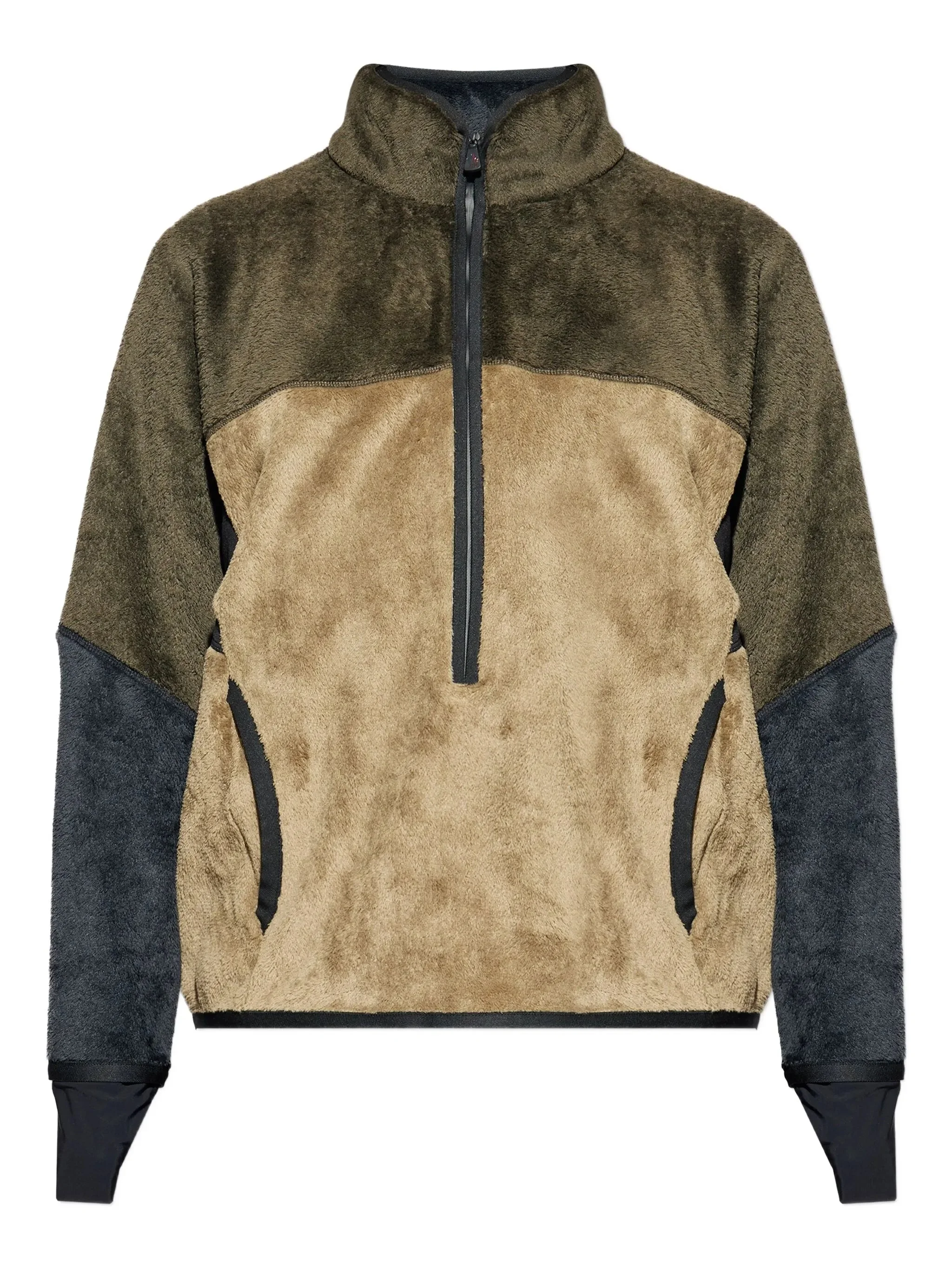 - beige - green - zip fastening - high neck - long sleeves - logo patch Materials & Product Care Elastane 3%, Polyester 97%