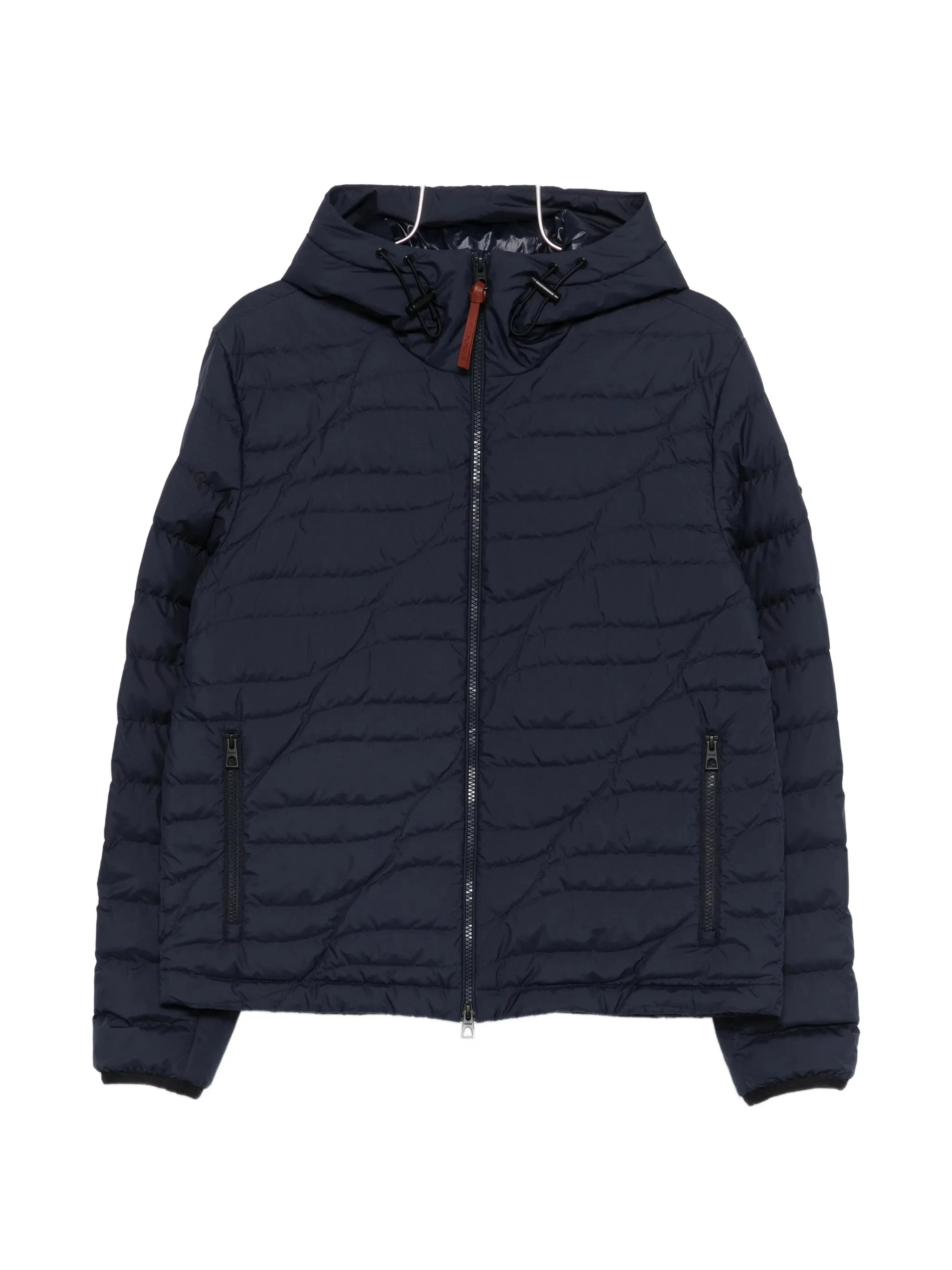 - blue - zipped closure - hooded - zip-fastening pockets - elasticated cuffs - quilted Materials & Product Care Lining: Feather 10%, Goose Down 90%, Polyester 100% Outer: Polyester 100% Size & Fit - The model is 1.87 m wearing size 3.