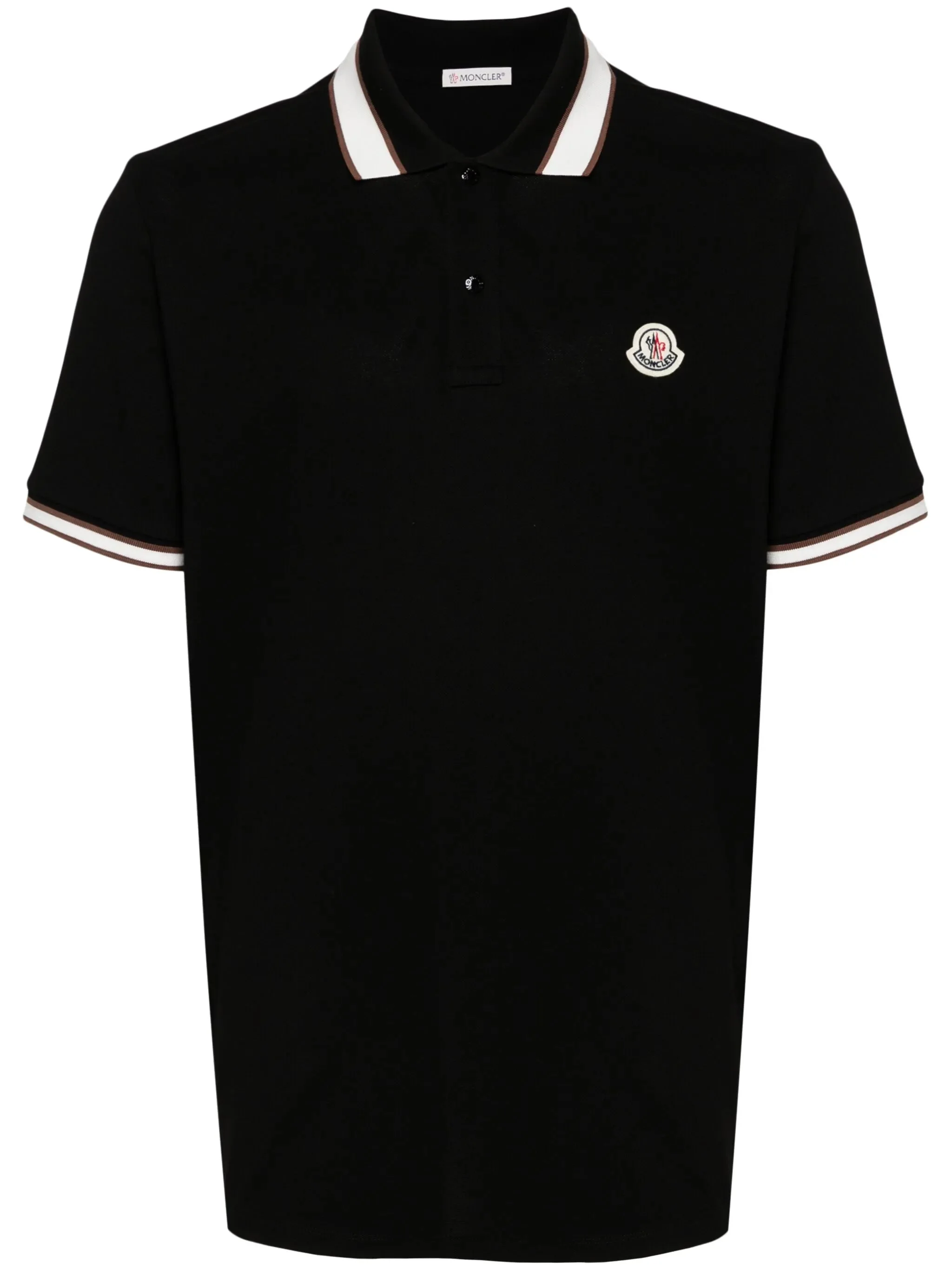 - black/white/brown - cotton - logo patch at the chest - front button placket - pique weave - stripe trim - polo collar - short sleeves - straight hem Materials & Product Care Cotton 100% Size & Fit - Designed for a regular fit, this polo shirt offers a comfortable loose fit throughout the body - Made from a midweight non-stretch fabric, this piece offers minimal elasticity when worn - The model is 1.87 m wearing size L.