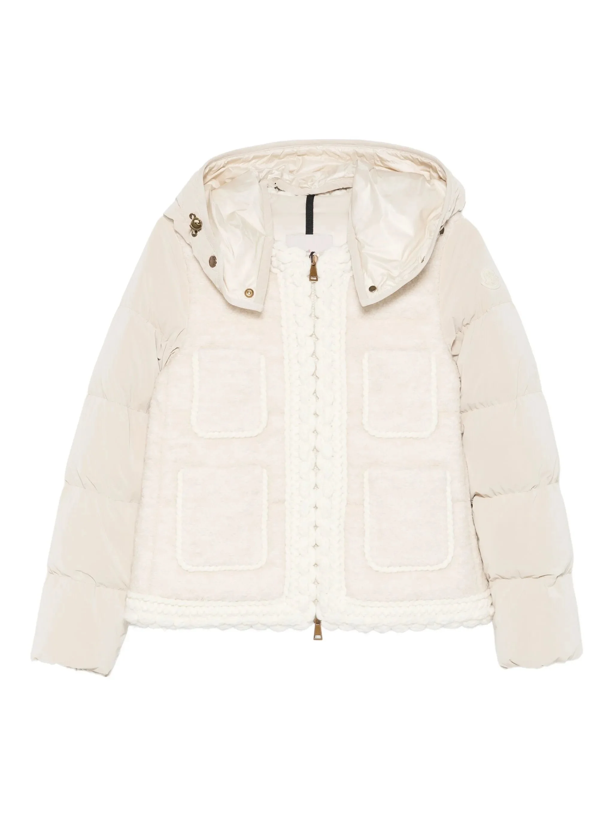 - cream white - padded design - hooded - front pockets - button fastening - braided trim Materials & Product Care Lining: Feather 10%, Goose Down 90%, Polyamide 100% Outer: Acrylic 100%, Polyamide 100%, Polyester 100%, Wool 100%, viscose 100% Size & Fit - The model is 1.76 m wearing size 0.