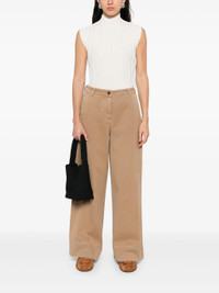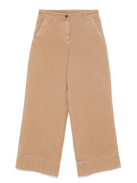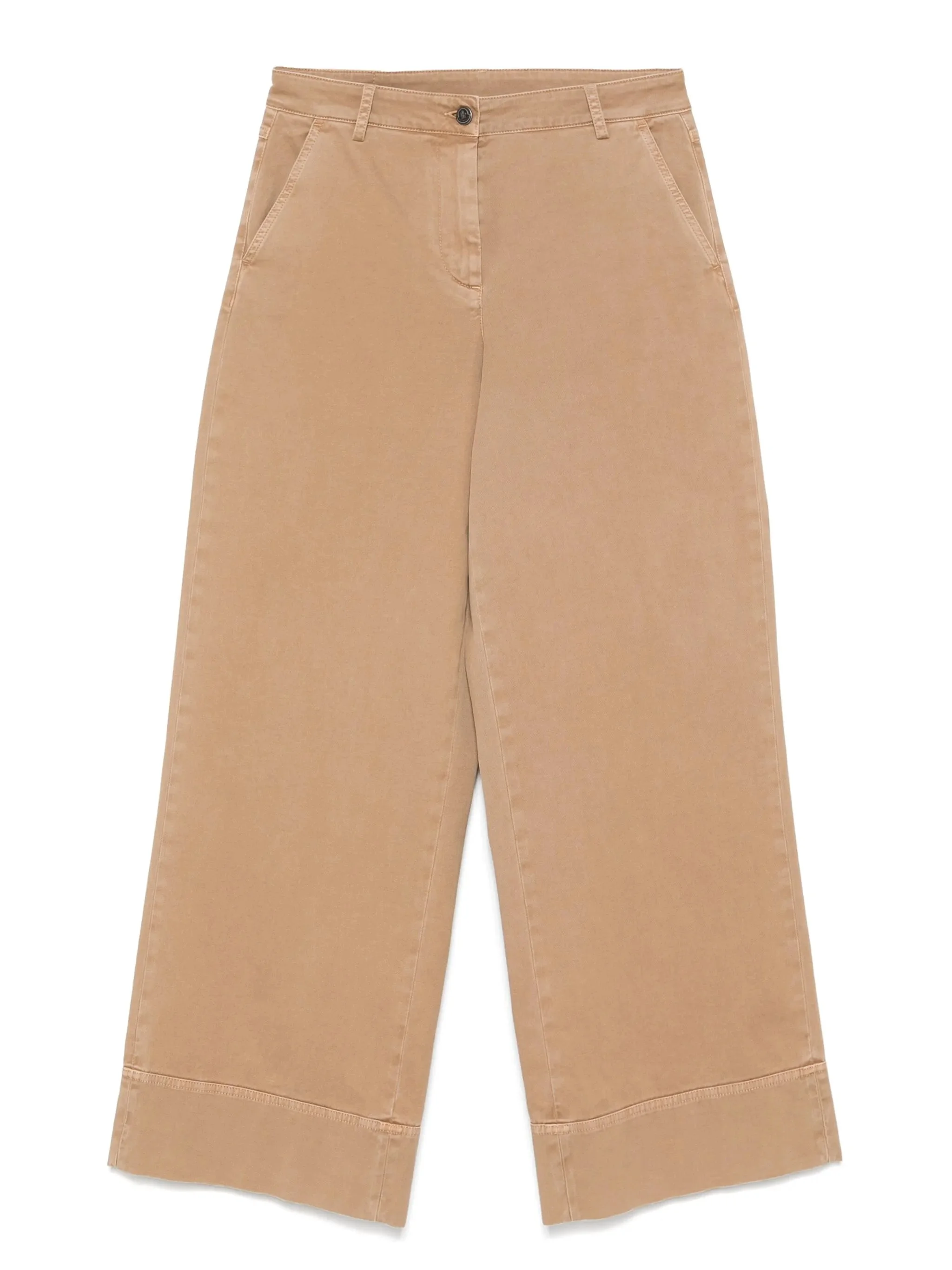 - light brown - front button and zip fastening - two diagonal pockets to the sides - two rear patch pockets - belt loops Materials & Product Care Cotton 98%, Elastane 2% Size & Fit - Designed with a wide-leg cut, these trousers allow for a close fit at the waist and offer a loose and roomy fit over the leg - Made from a midweight stretch fabric, this piece offers elasticity and flexibility when worn - The model is 1.75 m wearing size 40.