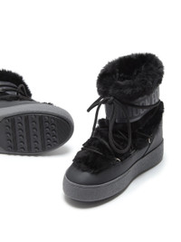 - black - faux-fur design - panelled design - logo-print strap - logo print to the side - water-repellent - metal eyelet detailing - ankle-length - front lace-up fastening - round toe - flat rubber sole Materials & Product Care Lining: Bovine Leather (top grain) 24%, Calf Leather 24%, Nylon 6%, Polyester 68%, Polyurethane 2% Outer: Modacrylic 49%, PVC 40%, Polyester 11% Sole: Rubber 100%