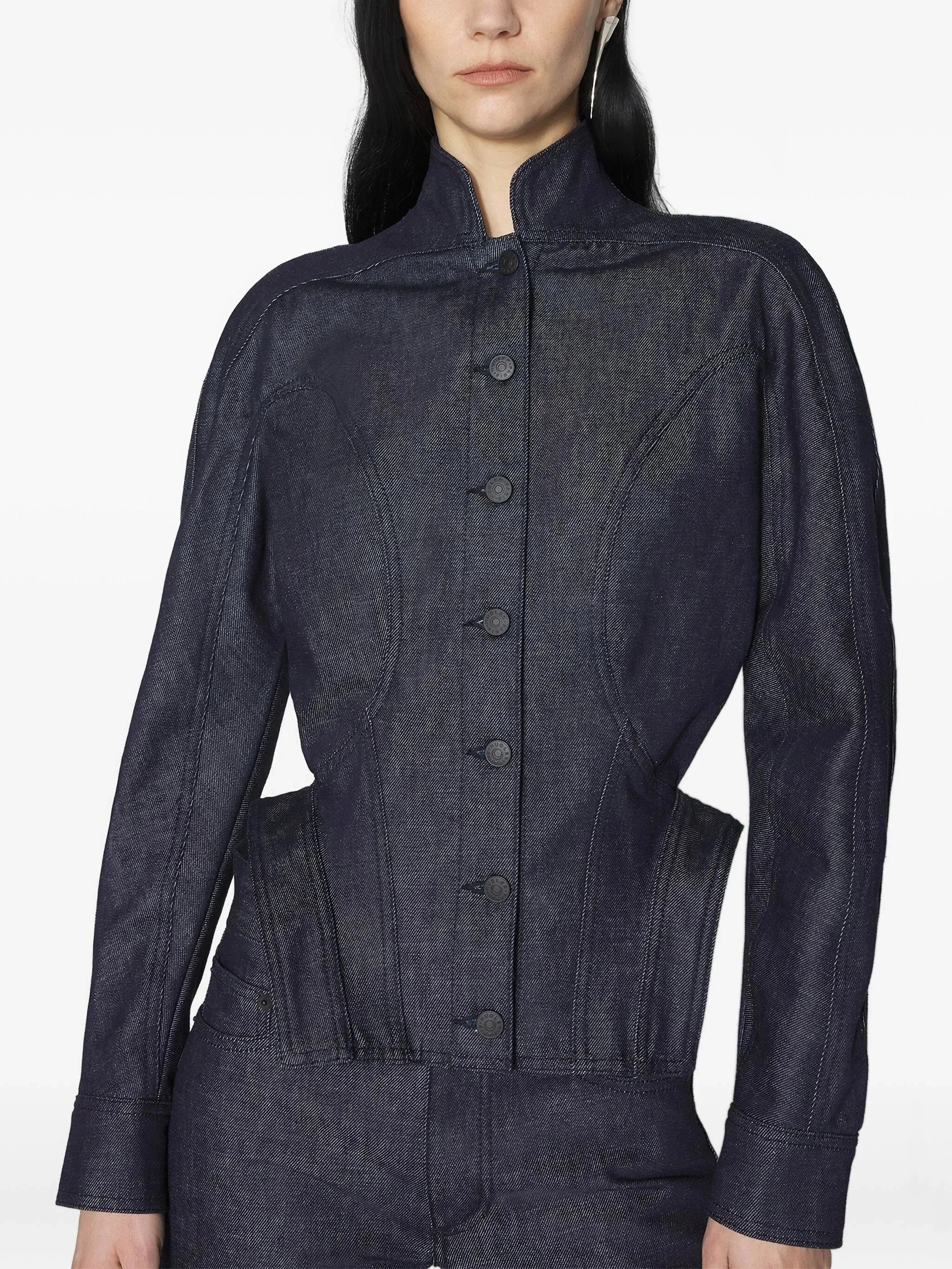 button-fastening sculptural cinched jacket