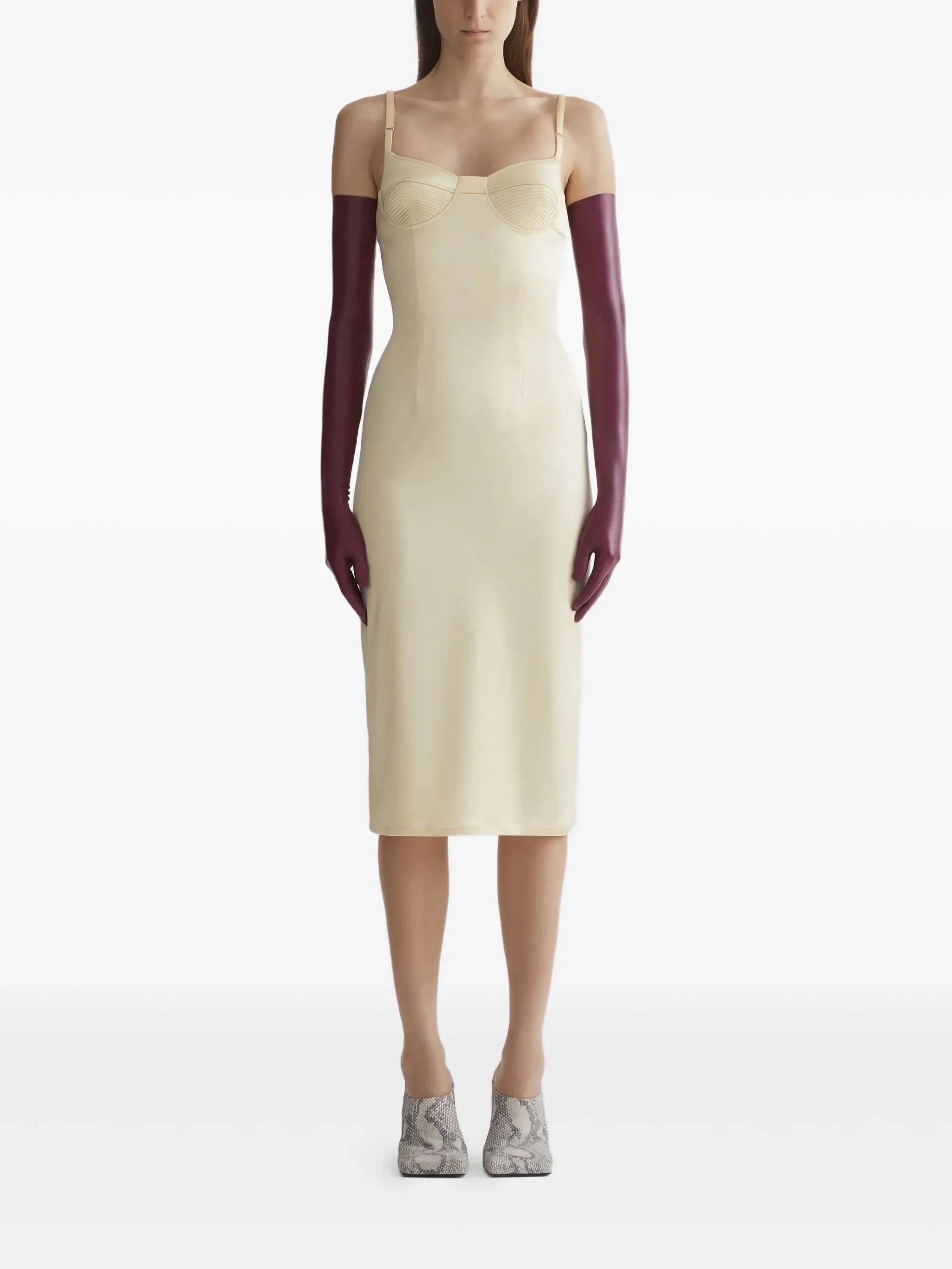 - light yellow - ribbed bodice - adjustable straps - square neckline - back zip fastening - knee length Materials & Product Care Fabric 100%