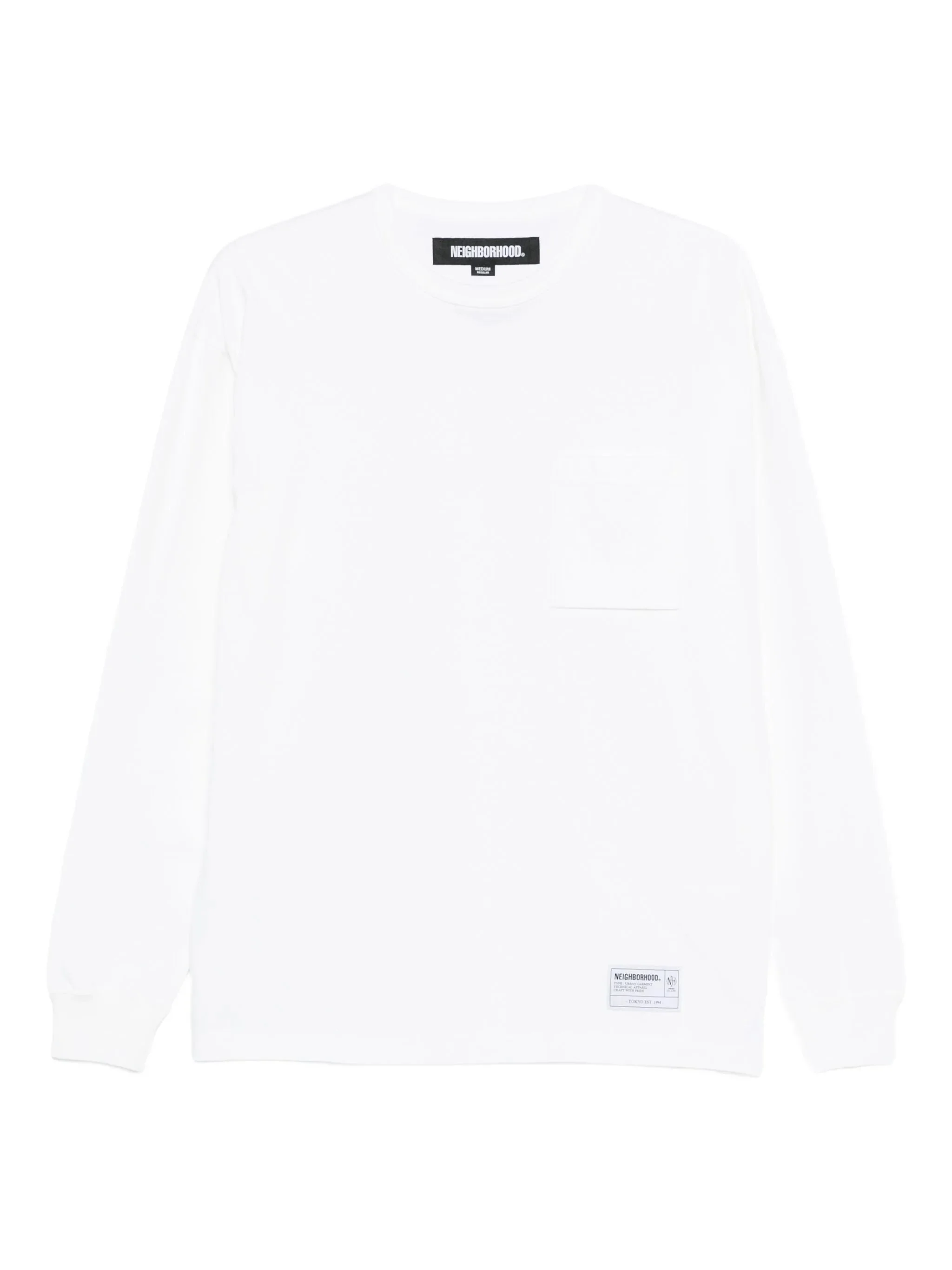 - white - crew neck - chest patch pocket - long sleeves - logo patch Materials & Product Care Fabric 100% Size & Fit - The model is 1.89 m wearing size M.