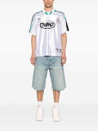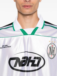 - white - short sleeves - striped detail - polo collar - graphic logo - curved hem Materials & Product Care Polyester 100% Size & Fit - The model is 1.85 m wearing size L.