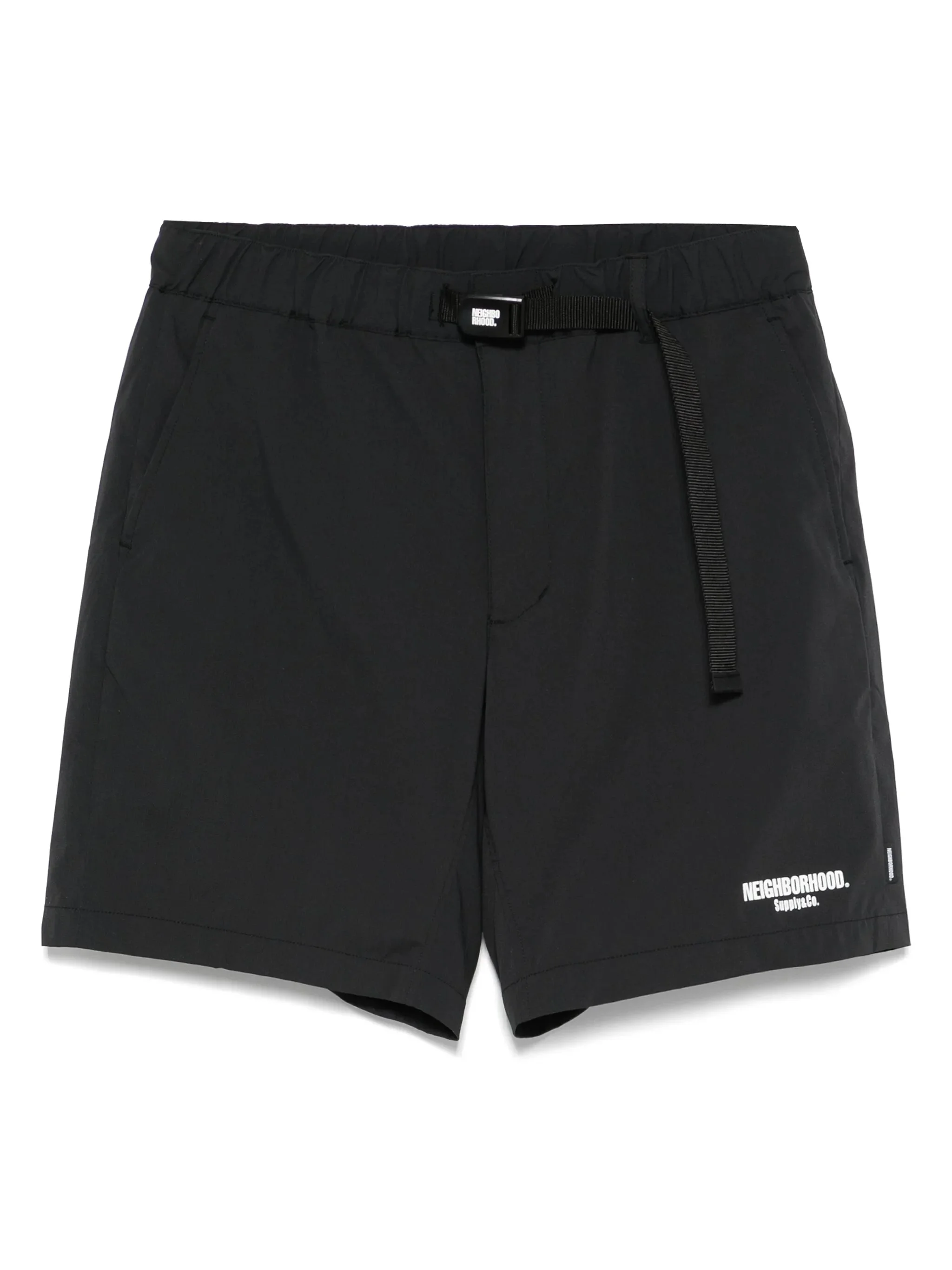 - black - buckle fastening - elasticated waistband - two side slit pockets - thigh-length Materials & Product Care Polyester 100% Size & Fit - Designed for relaxed fit, offering a comfortable loose fit over the leg - Made from a midweight non-stretch fabric - The elasticated waist allows for a comfortable fit - The model is 1.88 m wearing size M.