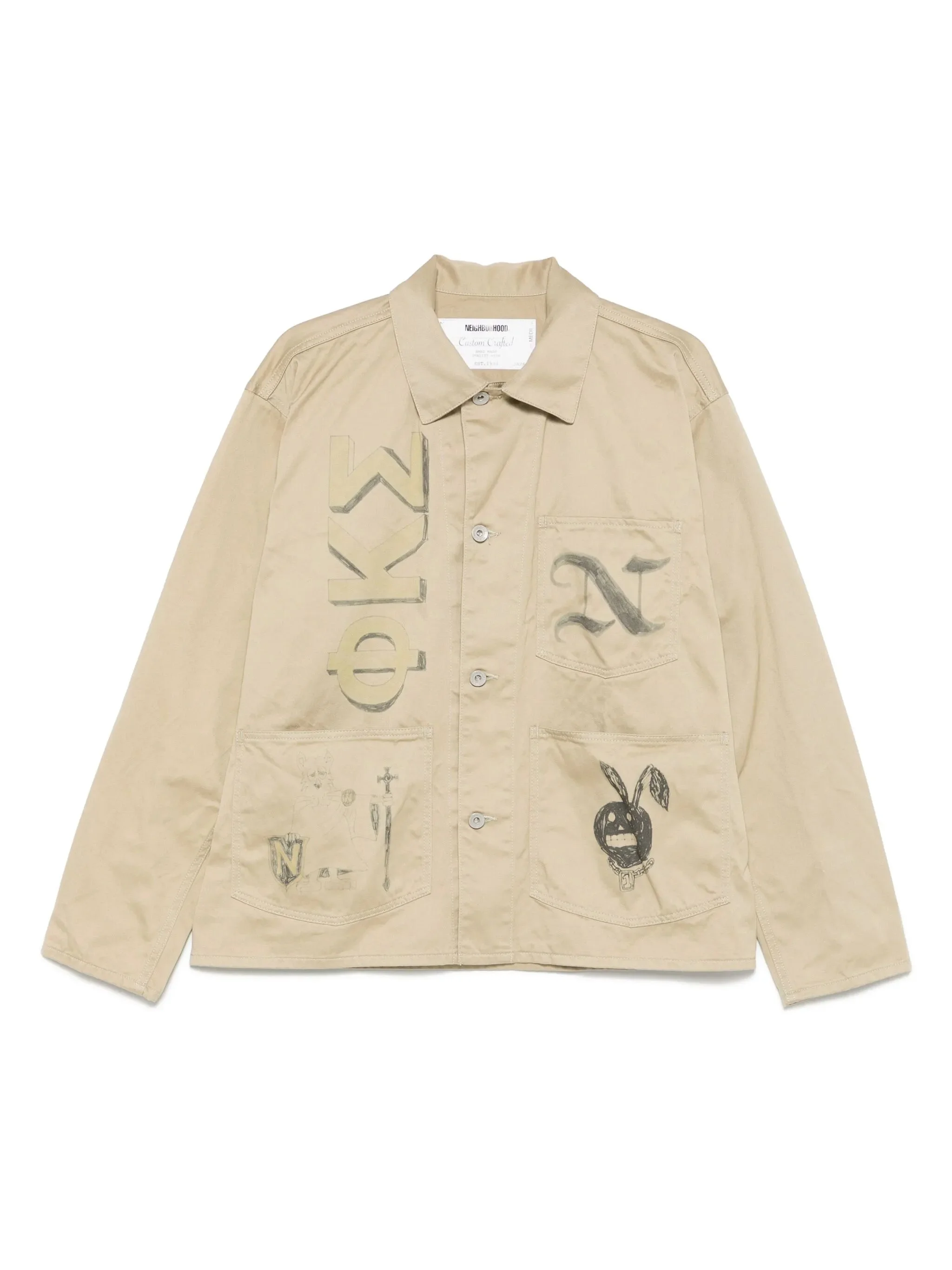 - beige - front button fastening - three front patch pockets - long sleeves - graphic print to the front Materials & Product Care Cotton 100% Size & Fit - Designed for a relaxed fit, this piece allows for comfort and movement when worn - Made from a midweight non-stretch fabric - The model is 1.88 m wearing size M.