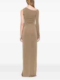 - sepia brown - side slit - one-shoulder - single long sleeve Materials & Product Care Elastane 8%, Polyester 100%, viscose 92% Size & Fit - Designed for a close fit throughout - Made from a lightweight stretch fabric, this piece offers elasticity and flexibility when worn - The model is 1.75 m wearing size S.