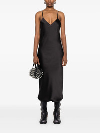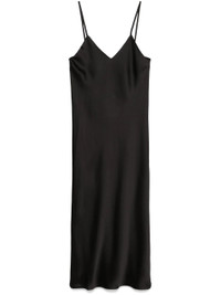 - black - satin weave - bias cut - slip silhouette - V-neck - spaghetti straps - V-back - full lining - straight hem - mid-length Materials & Product Care Lining: Polyester 100% Outer: Polyester 100% Size & Fit - Designed for a slim fit that sits just away from the body offering a close yet comfortable fit - Made from a lightweight non-stretch fabric - The model is 1.80 m wearing size S.