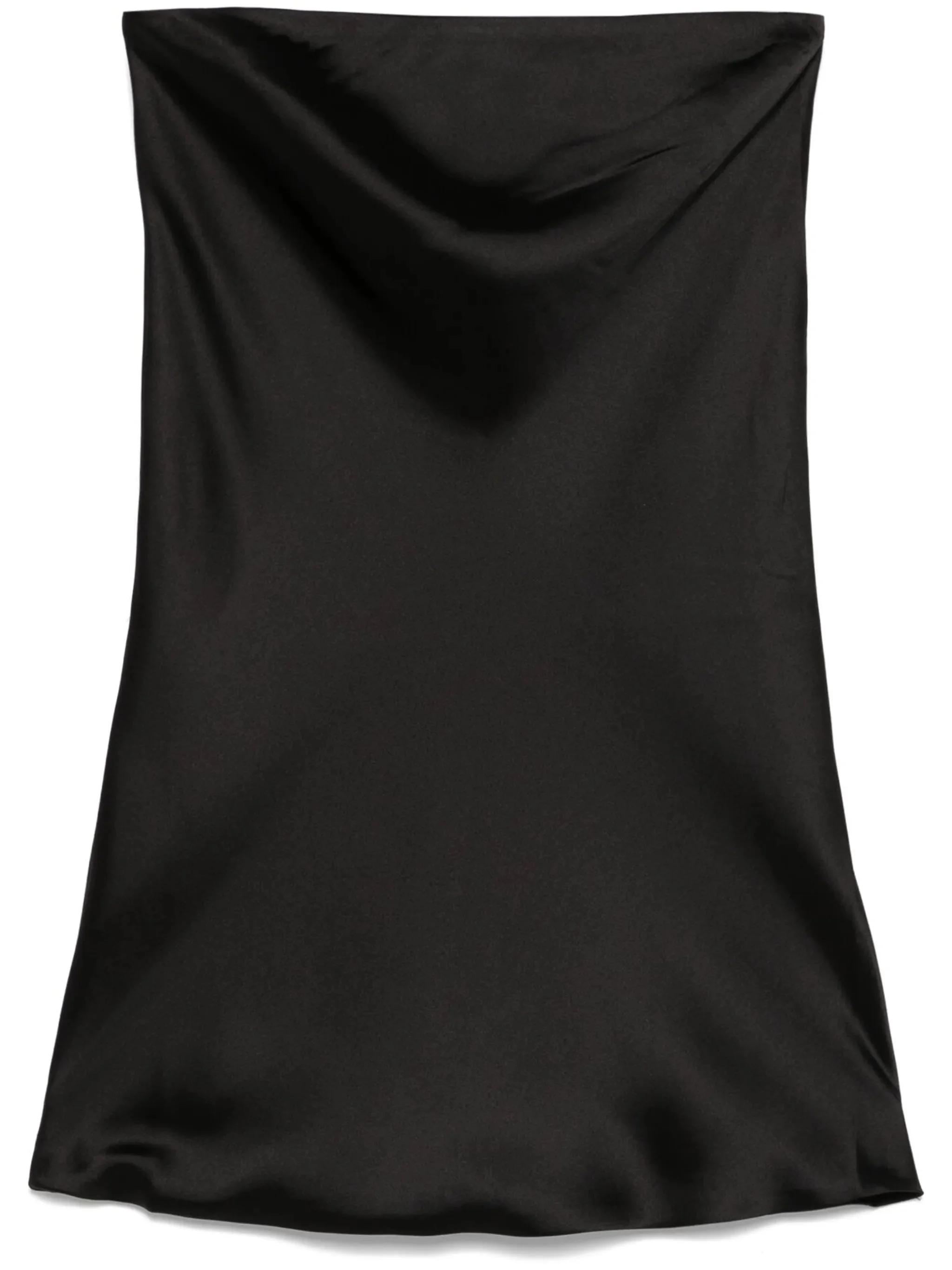 - black - satin weave - bias cut - strapless - square neck - internal silicone grips - full lining - curved hem - above-knee length Materials & Product Care Lining: Polyester 100% Outer: Polyester 100% Size & Fit - Designed for a slim fit that sits just away from the body offering a close yet comfortable fit - Made from a lightweight non-stretch fabric - The model is 1.80 m wearing size S.