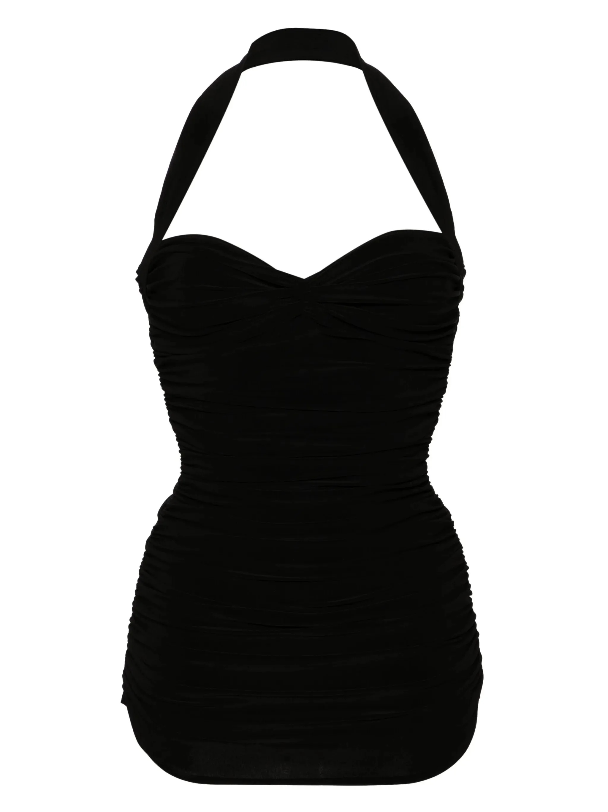 - black - stretch-design - halterneck - ruched bodice - thigh-length - full lining - Be mindful to try on swimwear over your own garments. Materials & Product Care Polyester 95%, Spandex/Elastane 5%