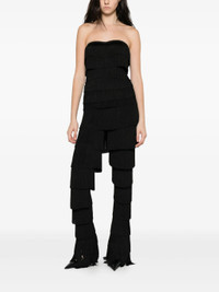 - black - strapless - sweetheart neck - fringe detailing Materials & Product Care Elastane 5%, Polyester 95% Size & Fit - The model is 1.80 m wearing size S.