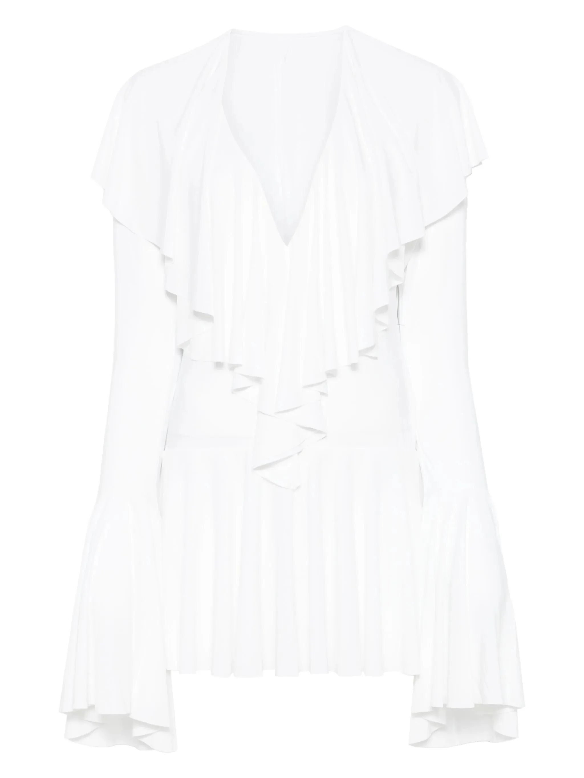 - white - concealed press-stud fastening - ruffled detailing - pleat detailing - layered effect Materials & Product Care Polyester 95%, Spandex/Elastane 5% Size & Fit - Designed for a close fit throughout - Made from a midweight stretch fabric, this piece offers elasticity and flexibility when worn - The internal briefs provide a close and supportive fit - The model is 1.78 m wearing size S.