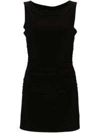 - black - stretch-jersey - boat neck - sleeveless - ruched bodice - straight hem - thigh-length - internal bodysuit Materials & Product Care Polyester 95%, Spandex/Elastane 5% Size & Fit - Designed for a slim fit that sits just away from the body offering a close yet comfortable fit - Made from a midweight stretch fabric, this piece offers elasticity and flexibility when worn - Slightly short in length; consider your own measurements - This piece fits true to size – take your usual size - The model is 1.75 m wearing size S.