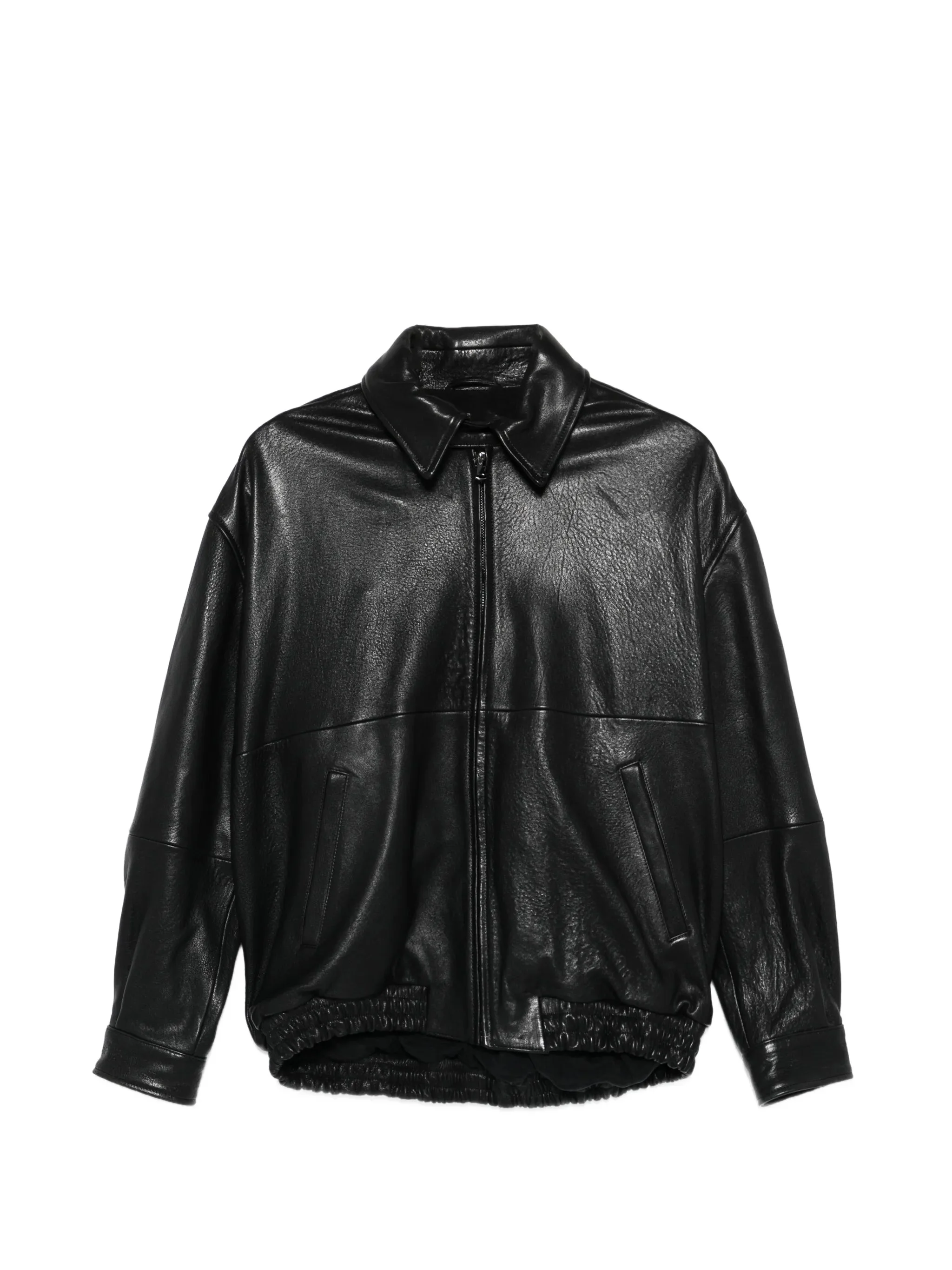- black - leather - point collar - zip fastening - elasticated hem Materials & Product Care Lining: Cupro 63%, Silk 100%, viscose 37% Outer: Lamb Skin 100% Size & Fit - The model is 1.80 m wearing size S.