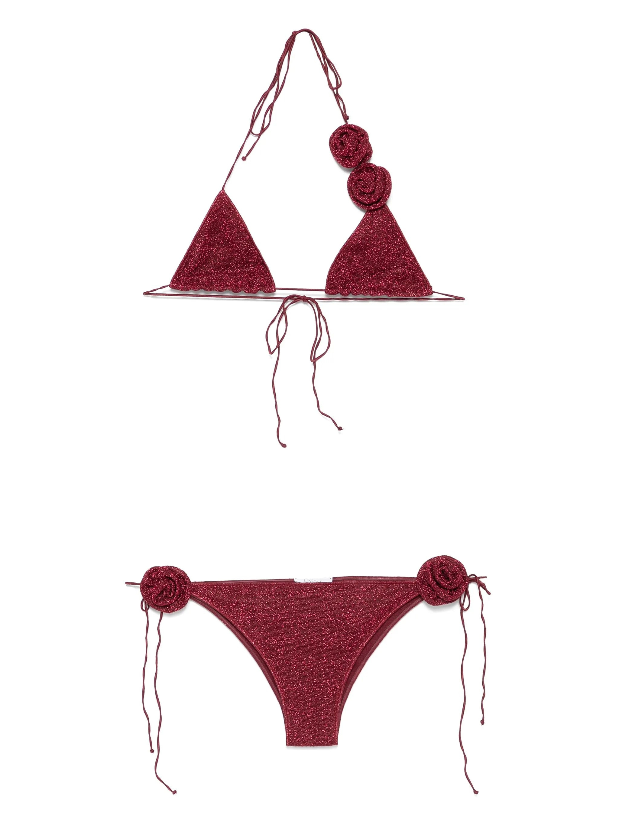 - burgundy - halterneck tie fastening - side-tie bottoms - triangle cup - Be mindful to try on swimwear over your own garments. Materials & Product Care Lining: Elastane 20%, Polyamide 80% Outer: Metallised Fibres 36%, Polyamide 64%