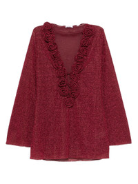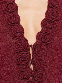 - burgundy - self-tie fastening - V-neck - long sleeves - floral applique Materials & Product Care Lining: Elastane 18%, Polyamide 82% Outer: Metallic Fibre 36%, Polyamide 64% Size & Fit - Designed for a slim fit that sits just away from the body offering a close yet comfortable fit - Made from a lightweight fabric - The model is 1.75 m wearing size S.